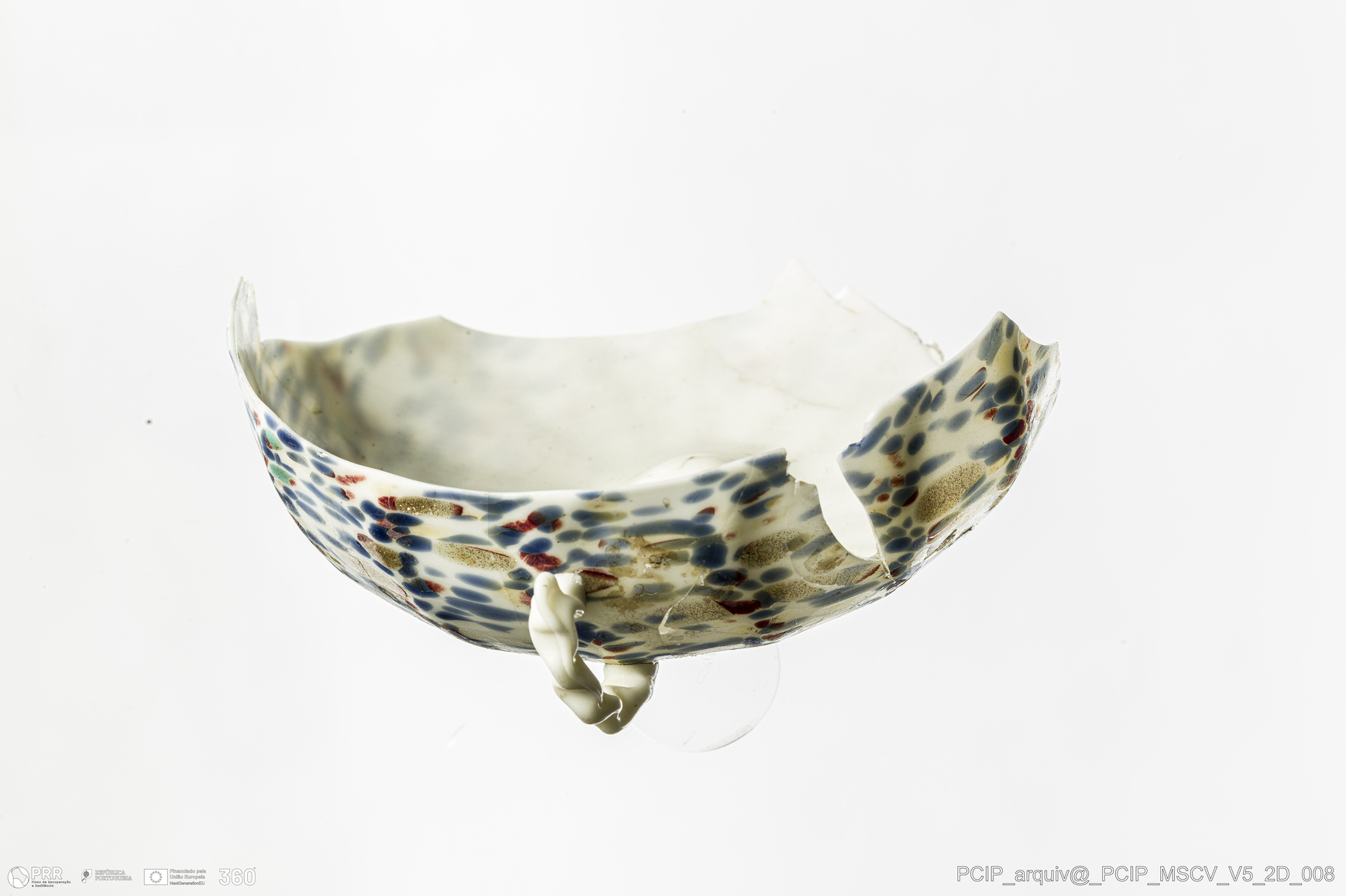 Matéria/Técnica: Vidro; Cronologia: Século XVII; Autoria: Desconhecida; Dimensões: Altura: 41mm; Diâmetro máximo: 95mm; Diâmetro da base: 39mm.