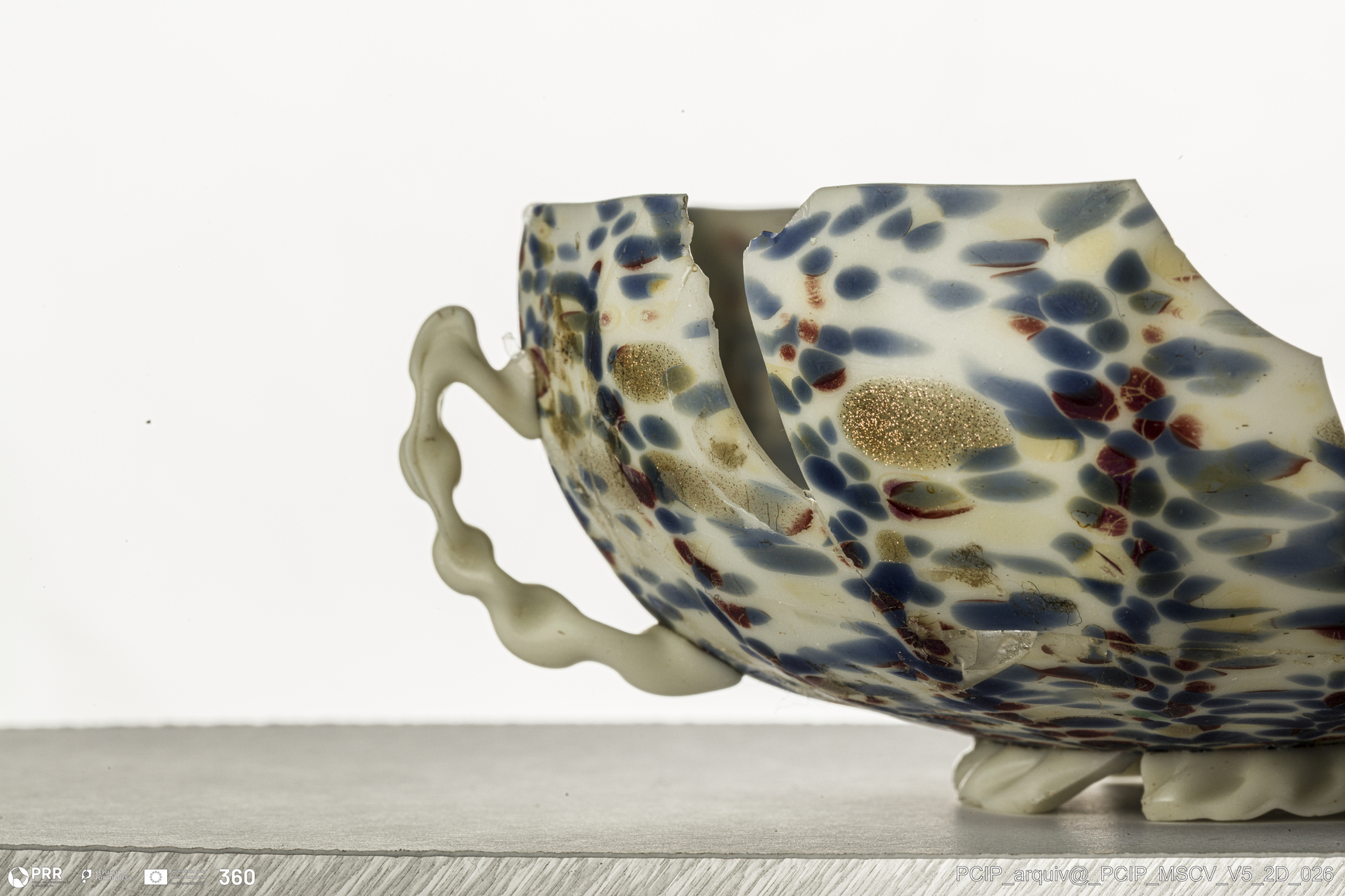 Matéria/Técnica: Vidro; Cronologia: Século XVII; Autoria: Desconhecida; Dimensões: Altura: 41mm; Diâmetro máximo: 95mm; Diâmetro da base: 39mm.