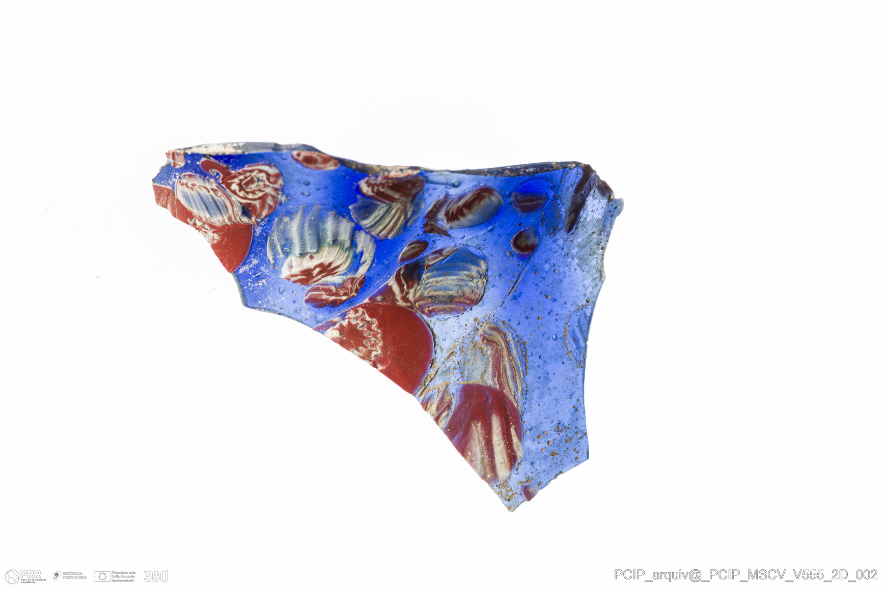 Matéria/Técnica: Vidro; Cronologia: Século XVII; Autoria: Desconhecida; Dimensões: comprimento: 44mm; Largura: 38mm.