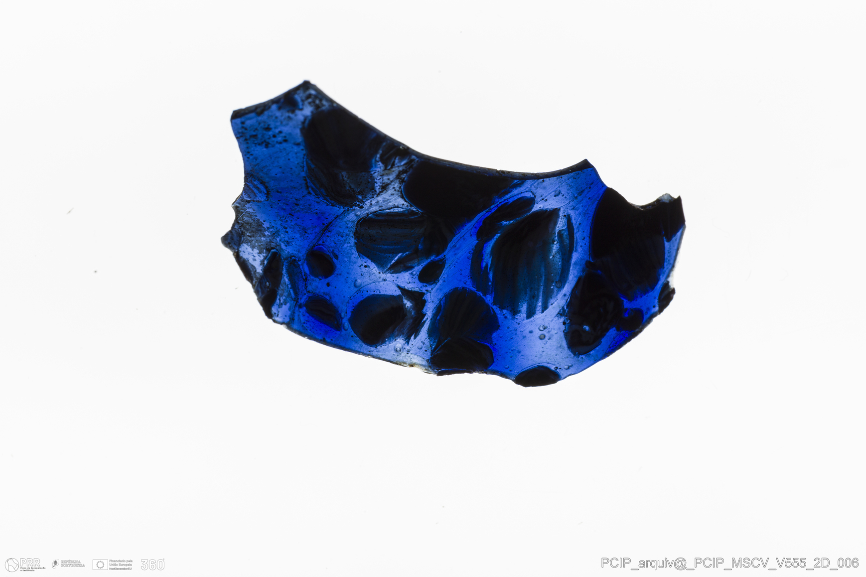 Matéria/Técnica: Vidro; Cronologia: Século XVII; Autoria: Desconhecida; Dimensões: comprimento: 44mm; Largura: 38mm.