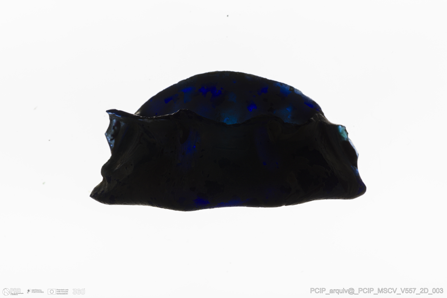 Matéria/Técnica: Vidro; Cronologia: Século XVII; Autoria: Desconhecida; Dimensões: comprimento: 50mm; Largura: 27mm.