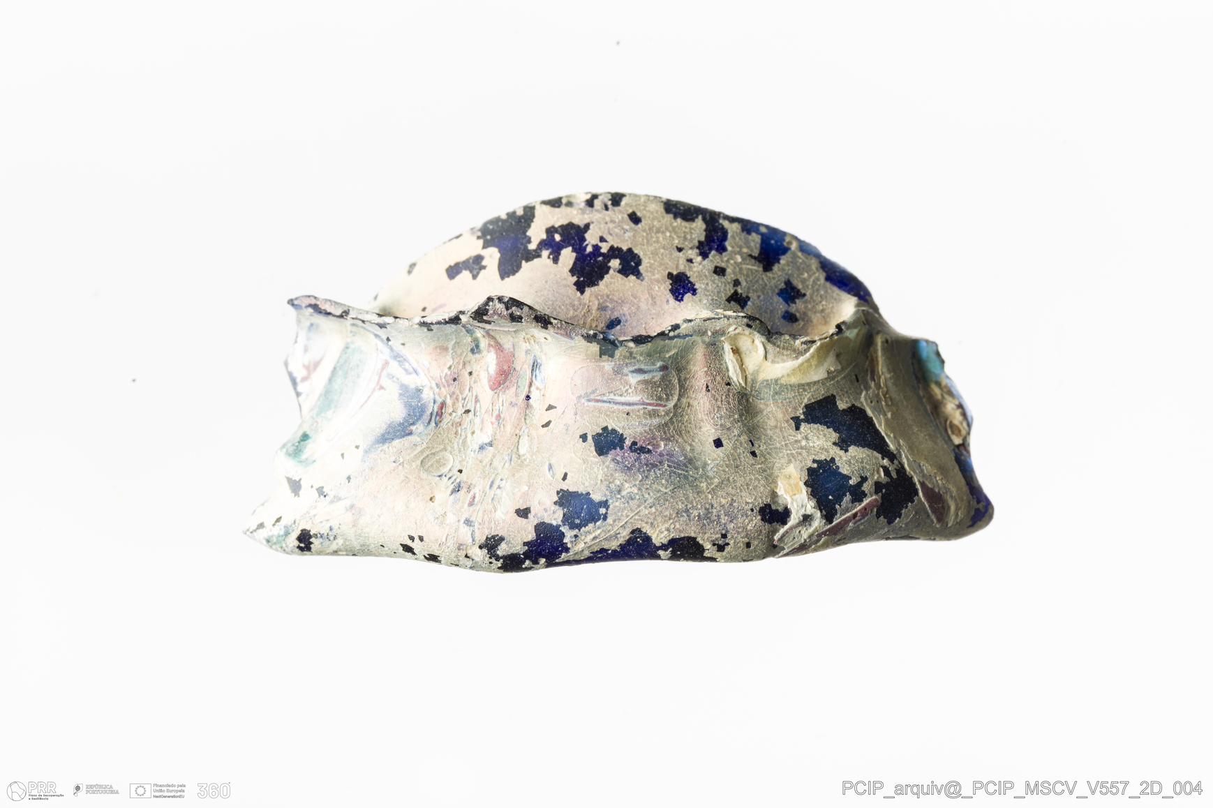 Matéria/Técnica: Vidro; Cronologia: Século XVII; Autoria: Desconhecida; Dimensões: comprimento: 50mm; Largura: 27mm.