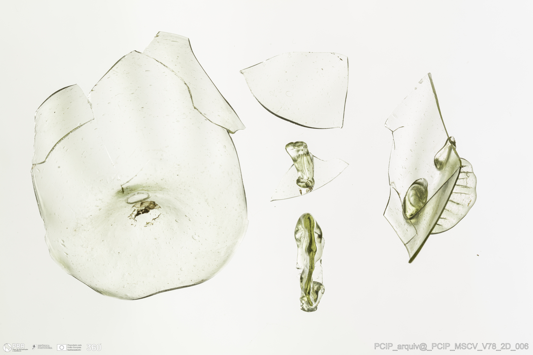 Matéria/Técnica: Vidro; Cronologia: Século XVII; Autoria: Desconhecida; Dimensões: Diâmetro bordo: 74mm; Diâmetro base: 43mm; Altura: 48mm.