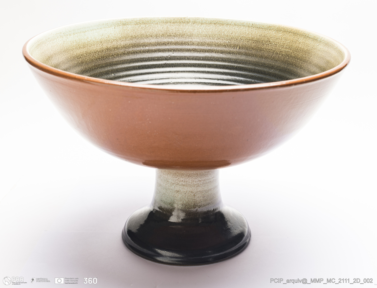 Matéria/Técnica: Barro rodado e modelado. Vidrado polícromo; Cronologia: 1990; Autoria: Francisco Lemos / Torres Vedras, Portugal; Dimensões (cm): Altura: 26; Diâmetro: 38,6.