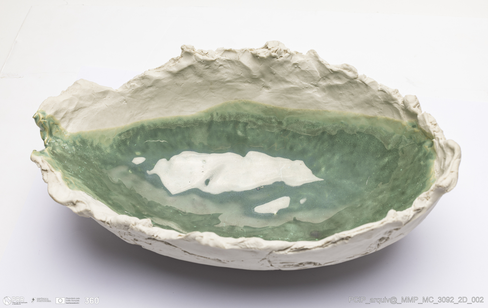 Matéria/Técnica: Porcelana e óxido de ferro modelada. Vidrado a óxido de ferro; Cronologia: 2001; Autoria: Lídia Margarida Pereira dos Santos / Atelier Lídia Santos, Caldas da Rainha, Portugal; Dimensões (cm): Altura: 9; Comprimento: 30,5.