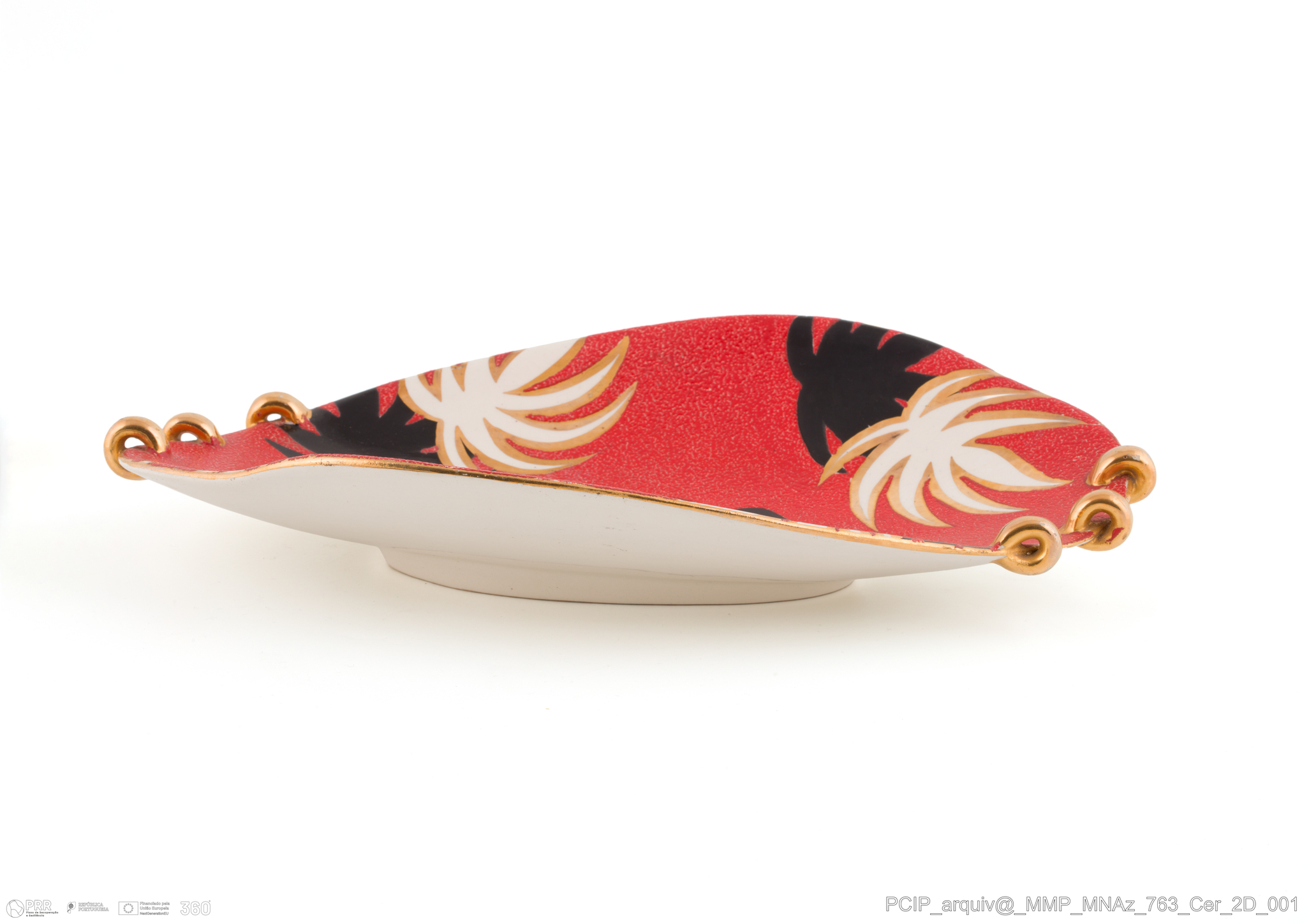 Matéria/Técnica: Moldagem / Faiança / Aerografia; Cronologia: Século XX; Autoria: Desconhecida; Dimensões: Altura: 7 cm x Largura: 22 cm x Comprimento: 36 cm.