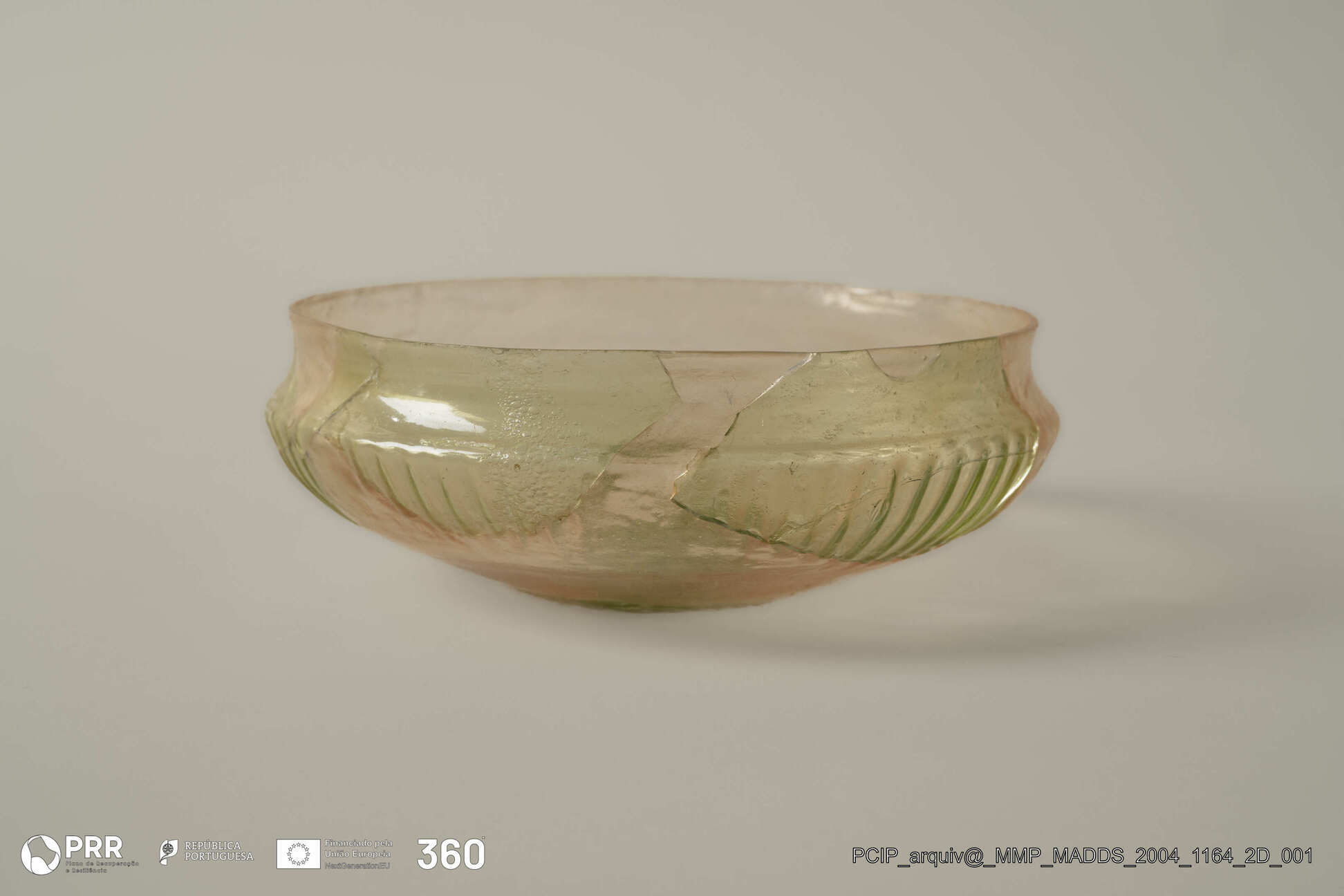 Matéria/Técnica: Vidro; Cronologia: Século I d.C; Autoria: Desconhecida; Dimensões (cm): 3,9 x 12 x 12.