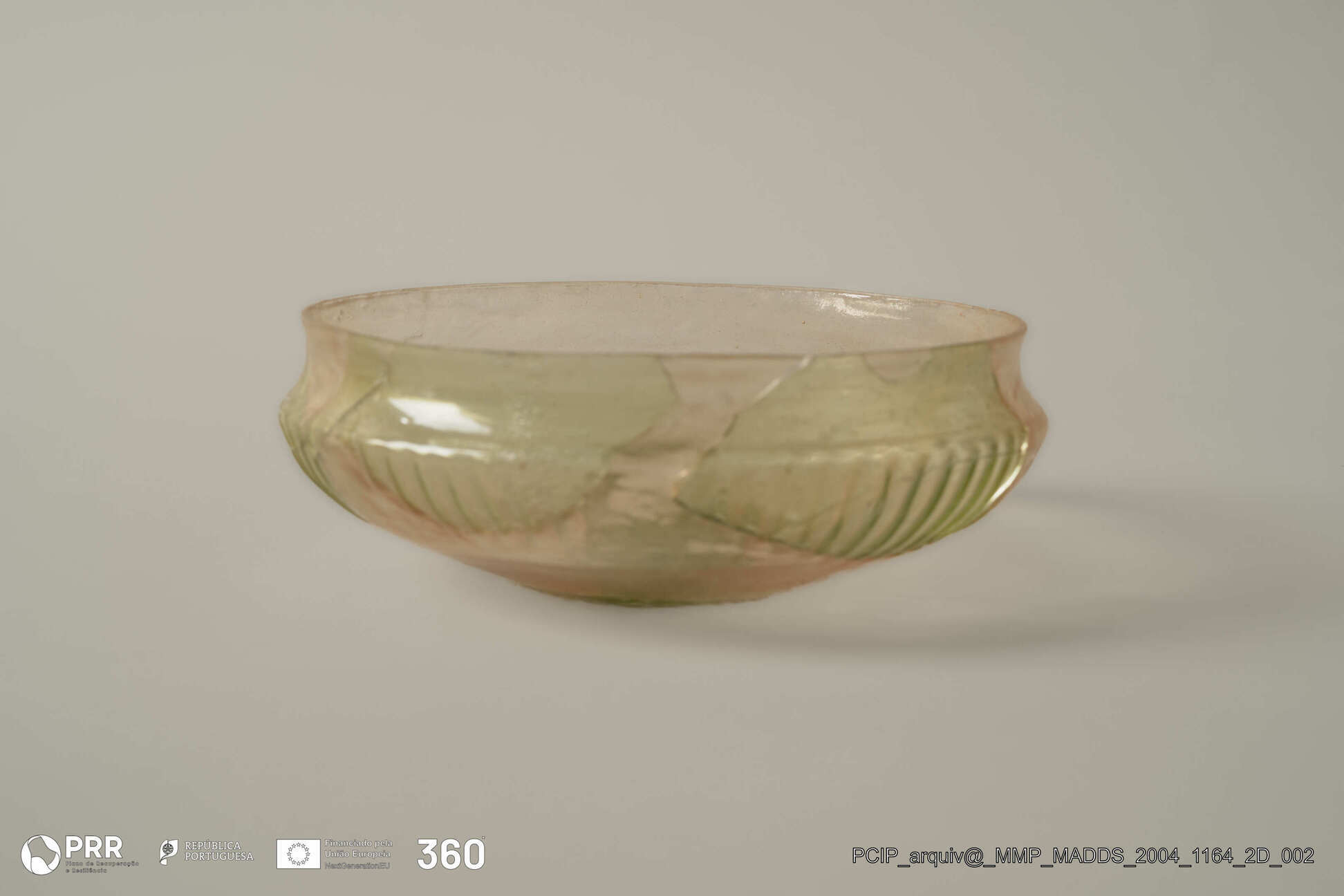Matéria/Técnica: Vidro; Cronologia: Século I d.C; Autoria: Desconhecida; Dimensões (cm): 3,9 x 12 x 12.