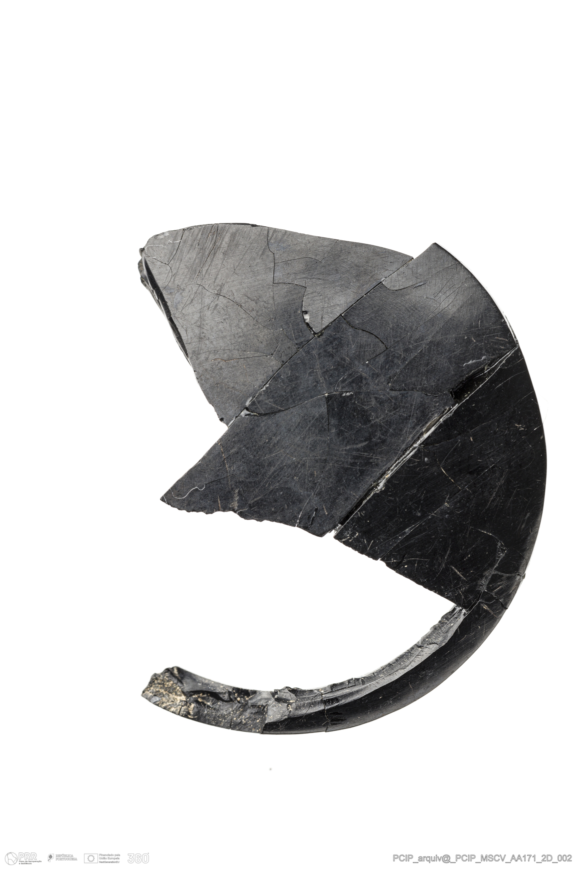 Matéria/Técnica: Azeviche; Cronologia: Século XVI- XVII; Autoria: Desconhecida; Dimensões: Comprimento: 16mm.
