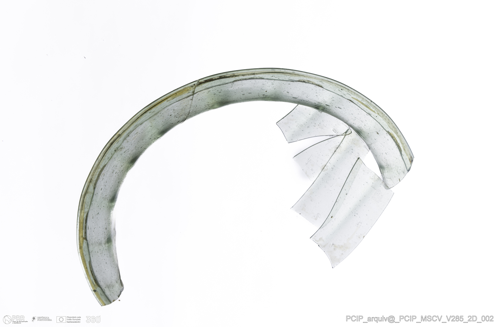 Matéria/Técnica: Vidro; Cronologia: Século XVII; Autoria: Desconhecida; Dimensões: Diâmetro bordo: 160mm, Diâmetro base: 100mm; Altura: 56mm.