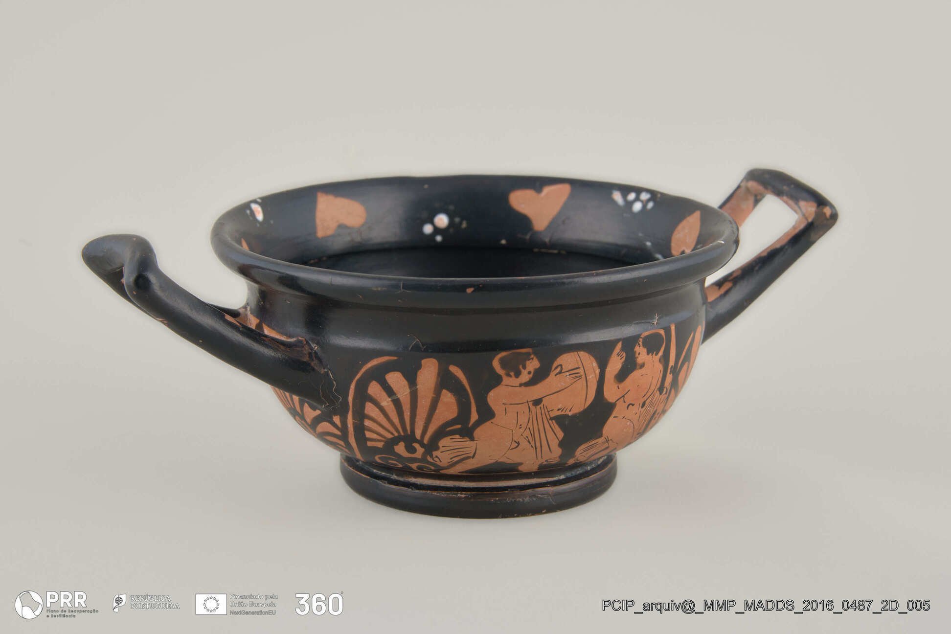Matéria/Técnica: Cerâmica; Cronologia: Cerca de 400 a.C; Autoria: Desconhecida; Dimensões (cm): 8 x 19 x 19.