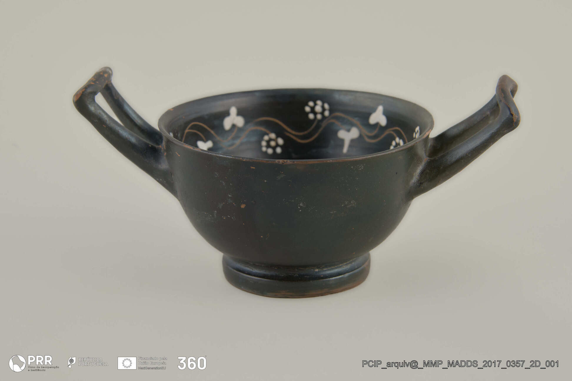 Matéria/Técnica: Cerâmica; Cronologia: Cerca de 340 a.C; Autoria: Desconhecida; Dimensões (cm): 8 x 16 x 16.