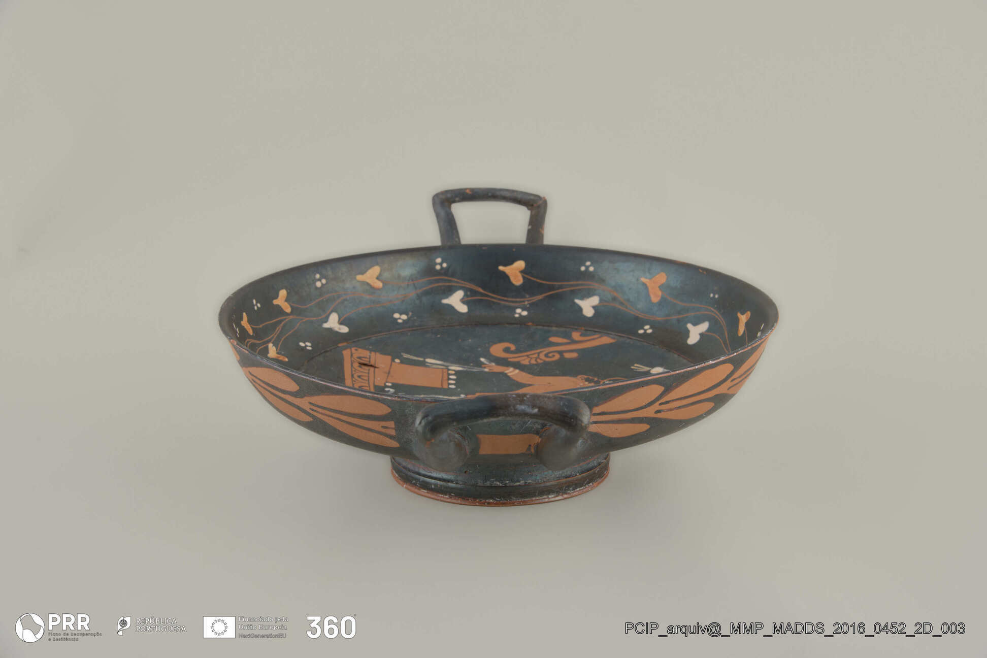 Matéria/Técnica: Cerâmica; Cronologia: Cerca 340 - 320 a.C; Autoria: Desconhecida; Dimensões (cm): 9 x 33 x 24.