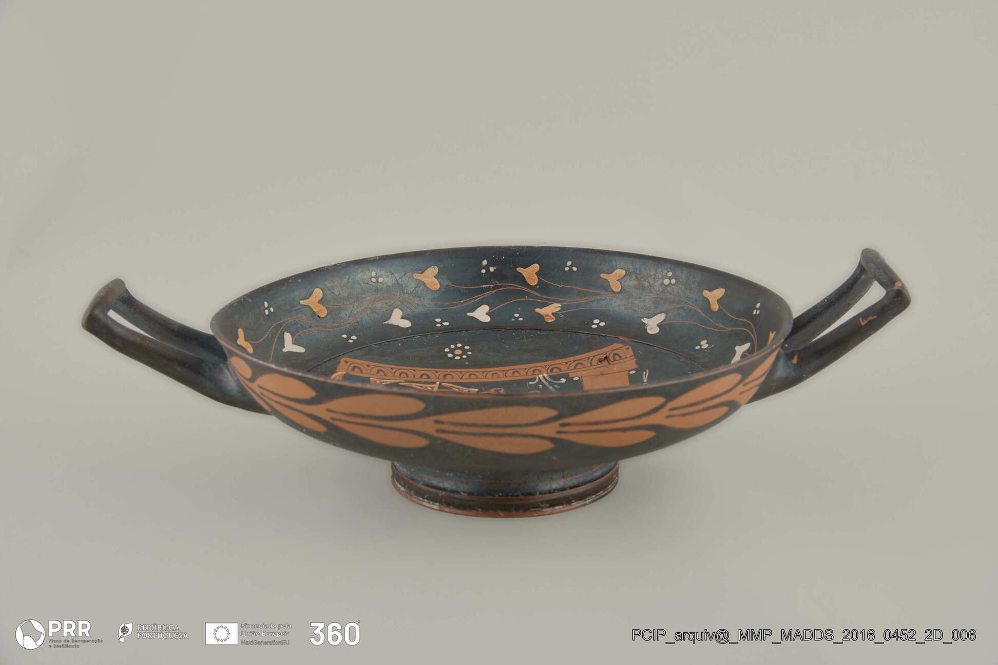 Matéria/Técnica: Cerâmica; Cronologia: Cerca 340 - 320 a.C; Autoria: Desconhecida; Dimensões (cm): 9 x 33 x 24.