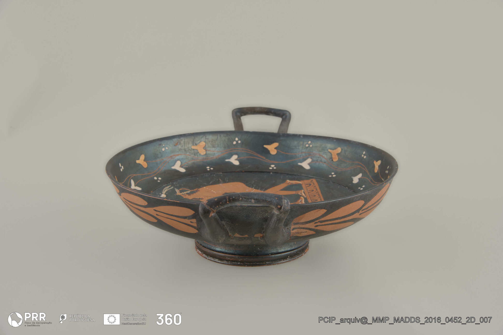 Matéria/Técnica: Cerâmica; Cronologia: Cerca 340 - 320 a.C.; Autoria: Desconhecida; Dimensões (cm): 9 x 33 x 24.