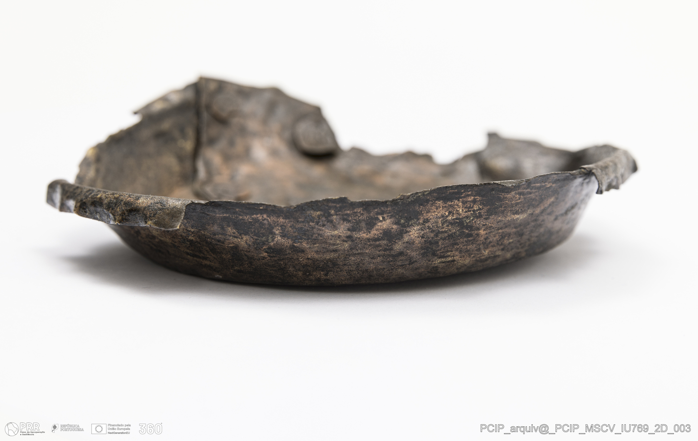 Matéria/Técnica: Metal; Cronologia: Século XVII; Autoria: Desconhecida; Dimensões: Altura: 41mm; Diâmetro: 155mm; Diâmetro base: 110mm.