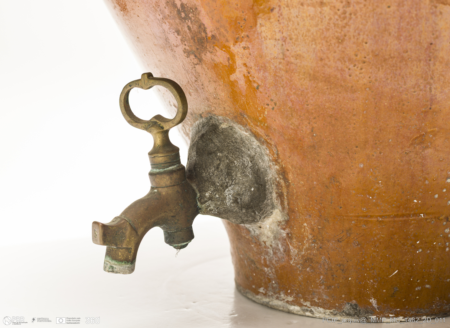 Matéria/Técnica: Barro vermelho rodado. Vidrado cor de mel; Cronologia: século XX; Autoria: Desconhecido / Caldas da Rainha, Portugal; Dimensões (cm): Altura: 86; Diâmetro: 45.