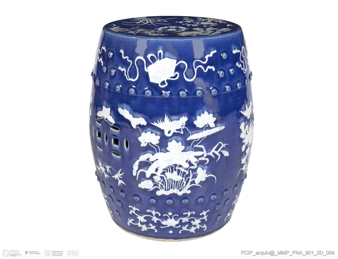 Matéria/Técnica: Porcelana da China; tinta (azul cobalto); Cronologia: Século XIX; Autoria: Desconhecida; Dimensões (cm): Altura: 48,0; Diâmetro: 31,0.