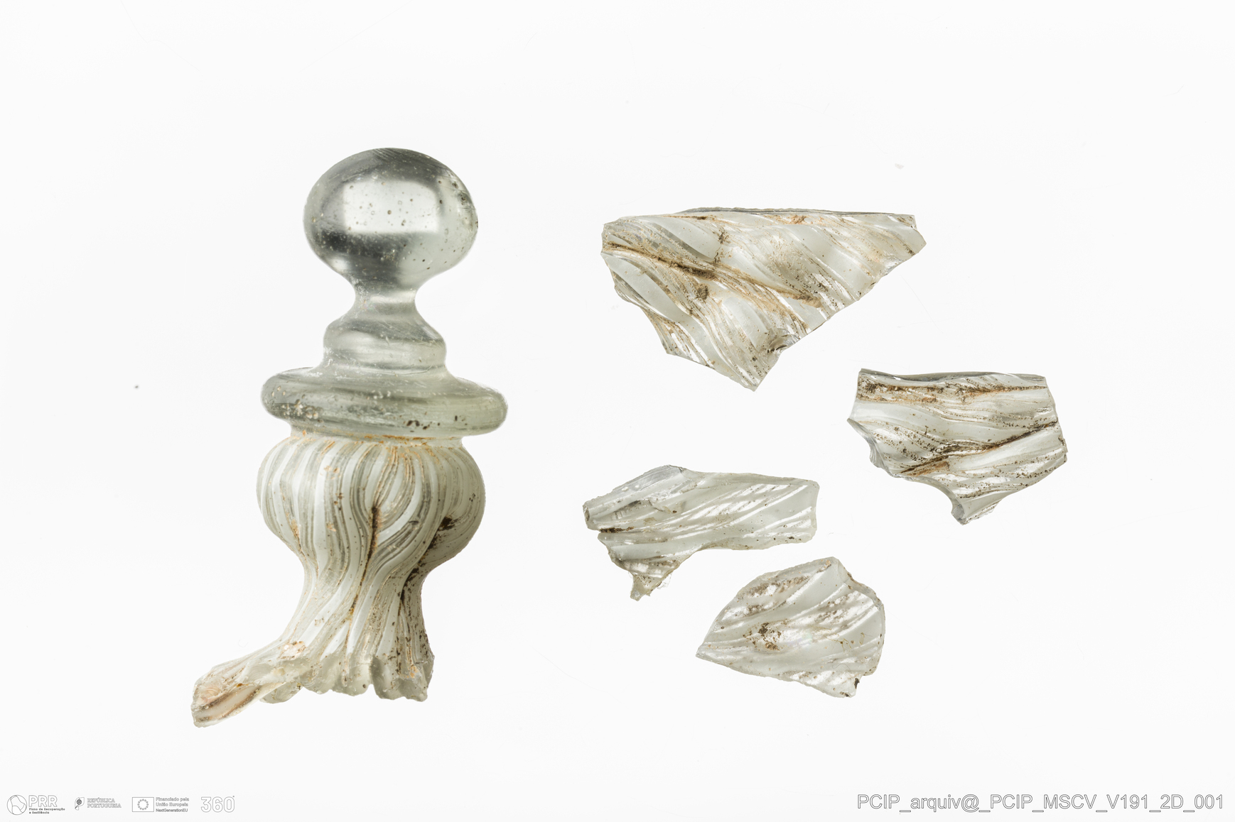 Matéria/Técnica: Vidro; Cronologia: Século XVII; Autoria: Desconhecida; Dimensões: Largura: 21mm; Altura: 51mm.