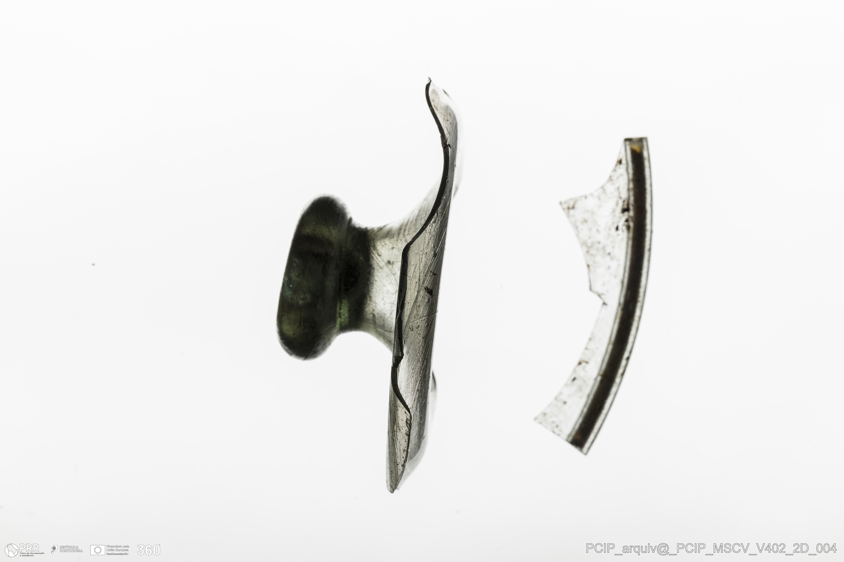 Matéria/Técnica: Vidro; Cronologia: Século XVII; Autoria: Desconhecida; Dimensões: Altura: 30mm; Largura: 68mm.