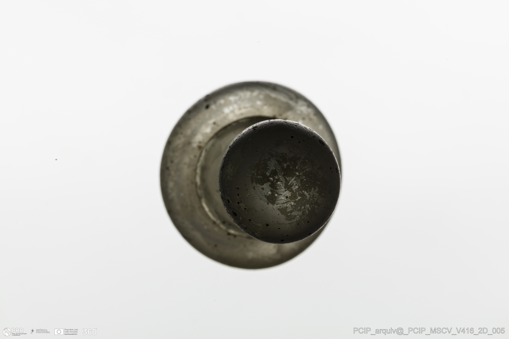 Matéria/Técnica: Vidro; Cronologia: Século XVII; Autoria: Desconhecida; Dimensões: Largura: 25mm; Altura: 48mm.