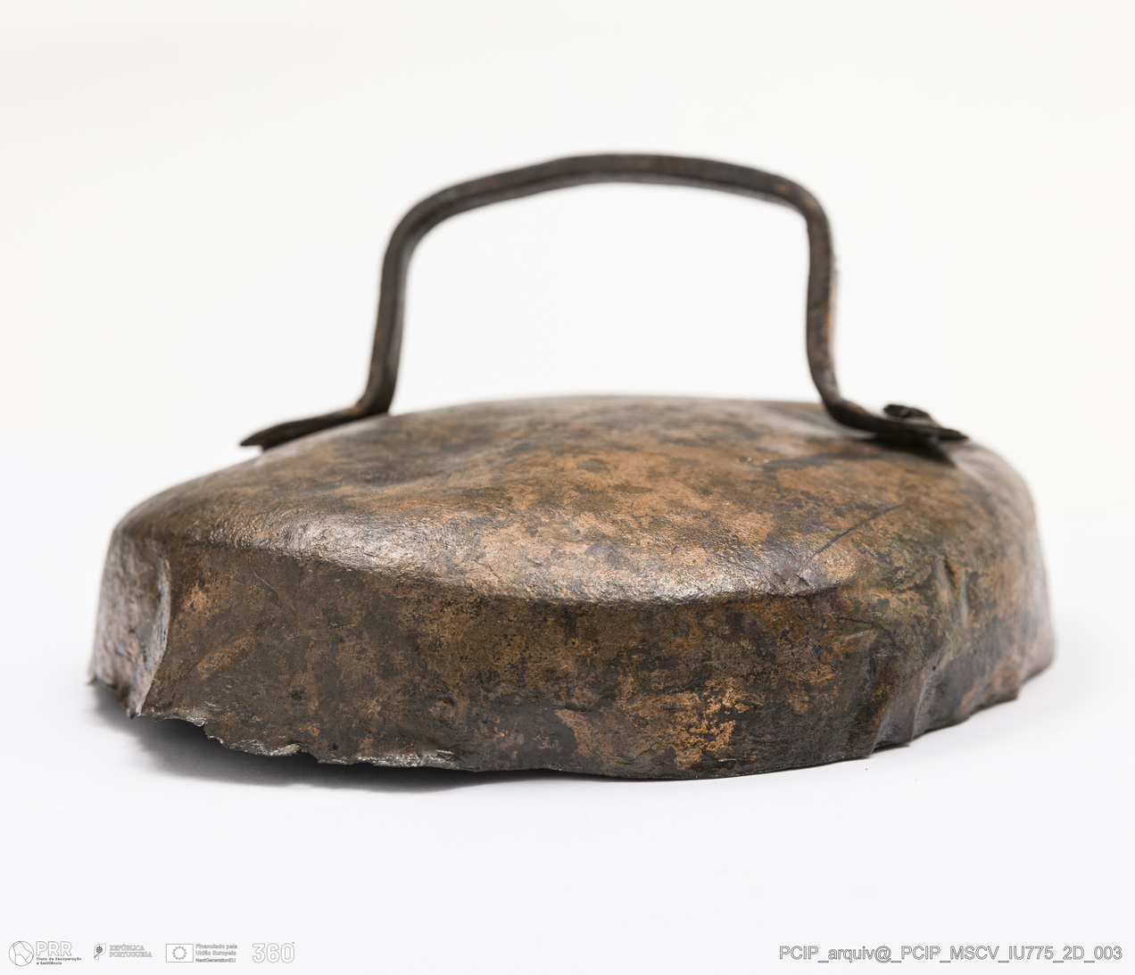 Matéria/Técnica: Metal; Cronologia: Século XVII; Autoria: Desconhecida; Dimensões: Altura: 70mm; Diâmetro: 165mm.