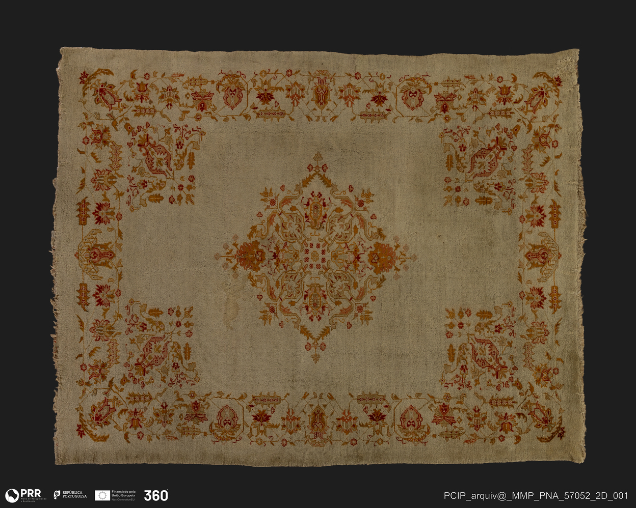 Matéria/Técnica: Nó turco sobre urdidura de lã; Cronologia: Desconhecida; Autoria: Desconhecida; Dimensões: Desconhecidas.