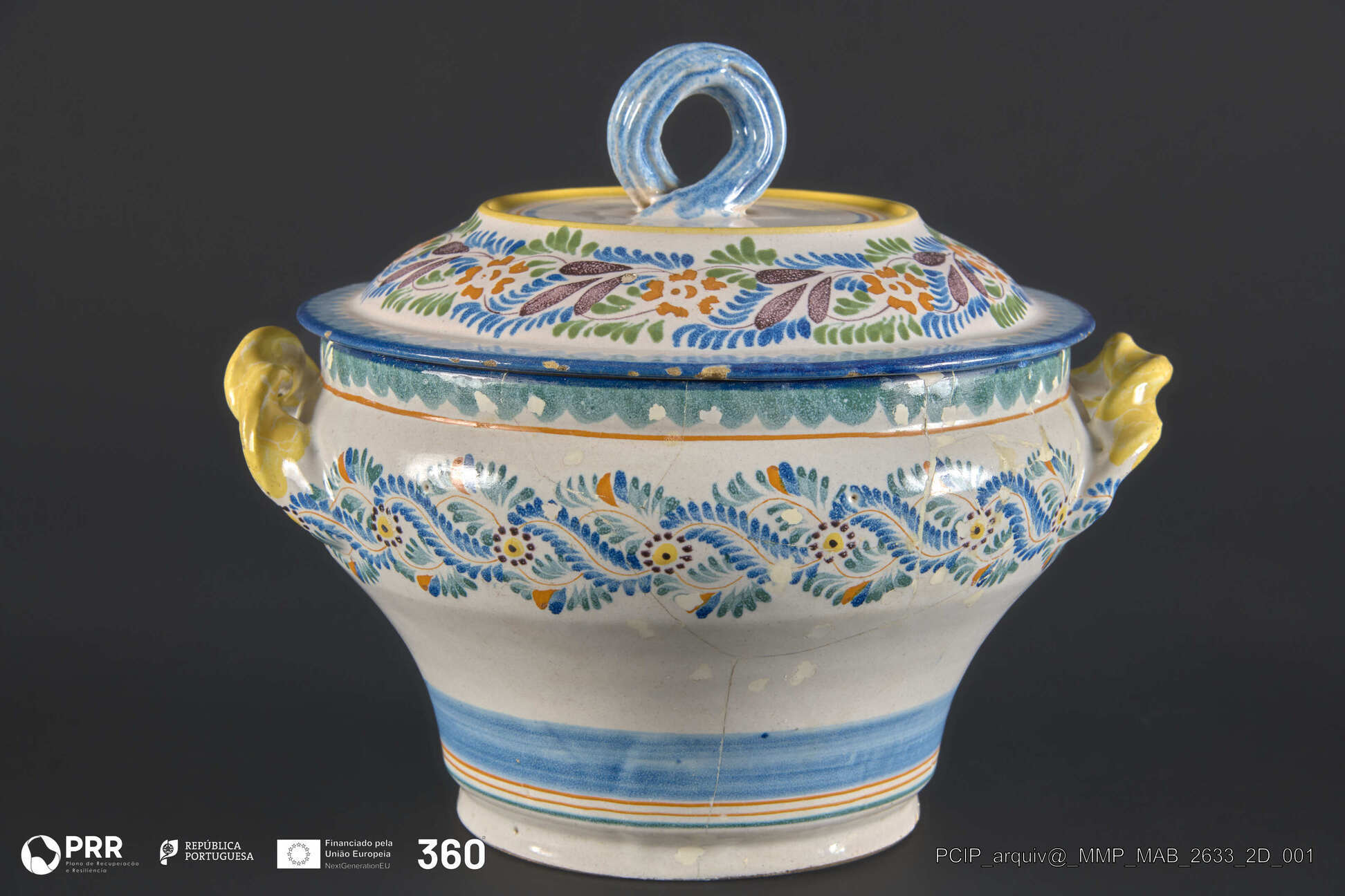 Matéria/Técnica: Faiança policroma, moldada, rodada e vidrada; Cronologia: Desconhecida; Autoria: Desconhecida; Dimensões: Desconhecidas.