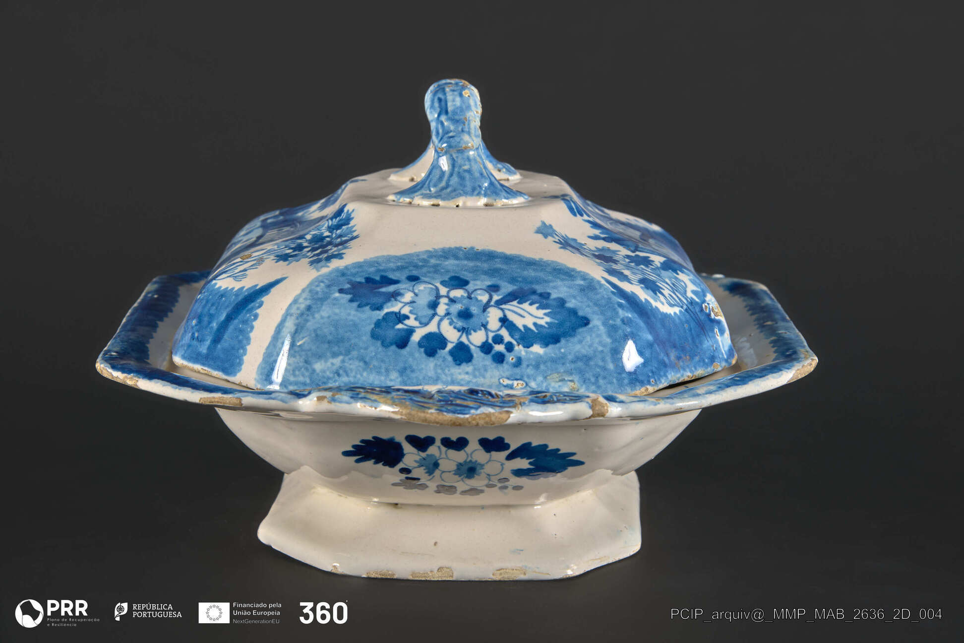Matéria/Técnica: Faiança moldada e vidrada; Cronologia: Desconhecida; Autoria: Desconhecida; Dimensões: Desconhecidas.