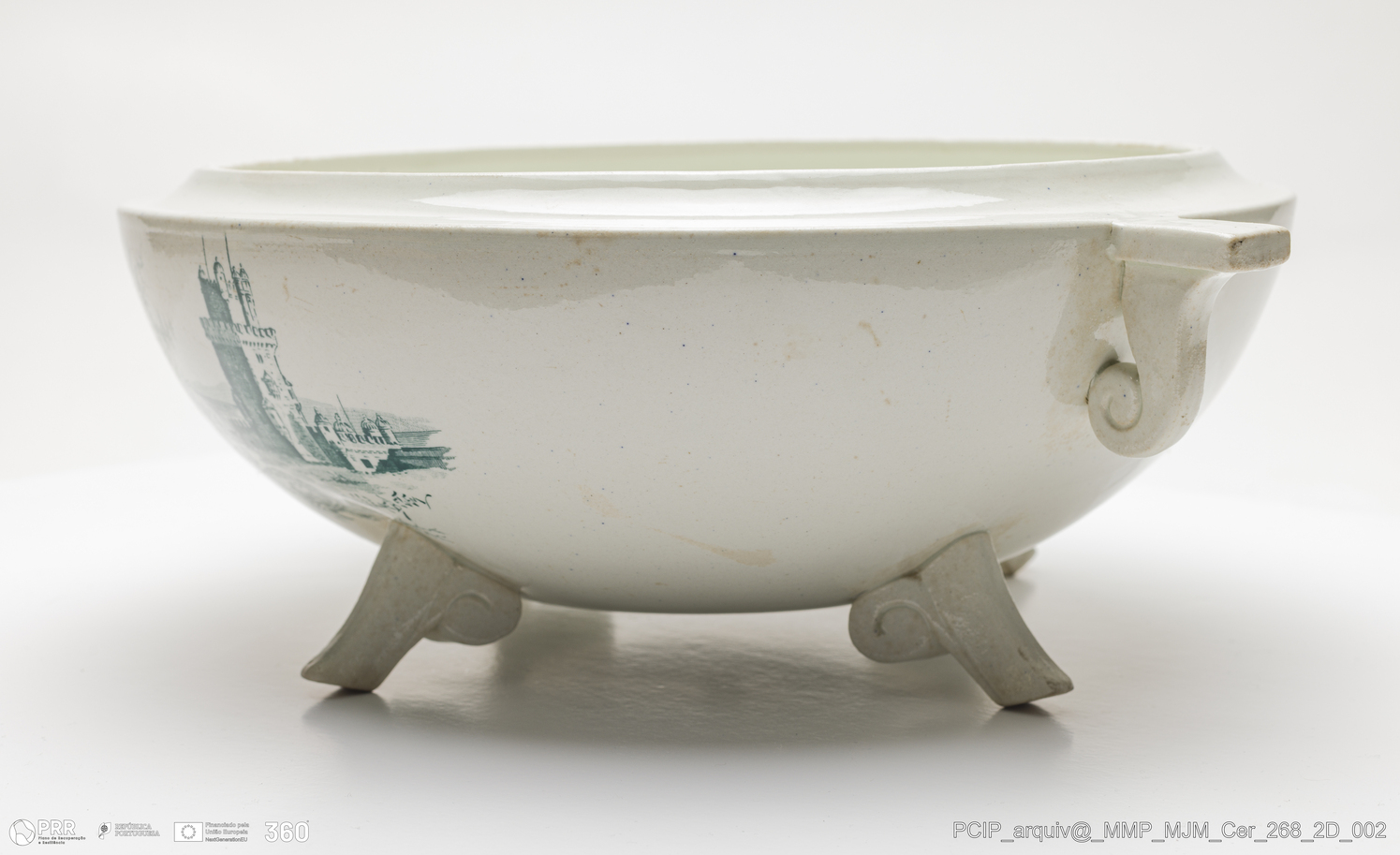 Matéria/Técnica: Barro vidrado; Cronologia: Desconhecida; Autoria: Marca: FFCR; Dimensões: Altura: 12,4 x diam 35 cm.