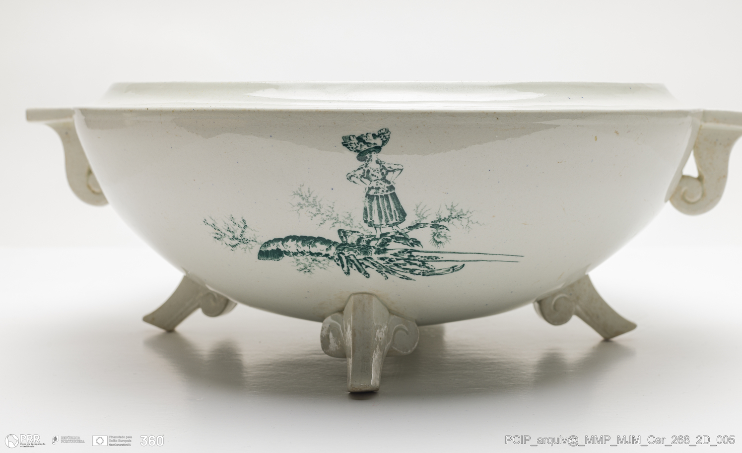 Matéria/Técnica: Barro vidrado; Cronologia: Desconhecida; Autoria: Marca: FFCR; Dimensões: Altura: 12,4 x diam 35 cm.