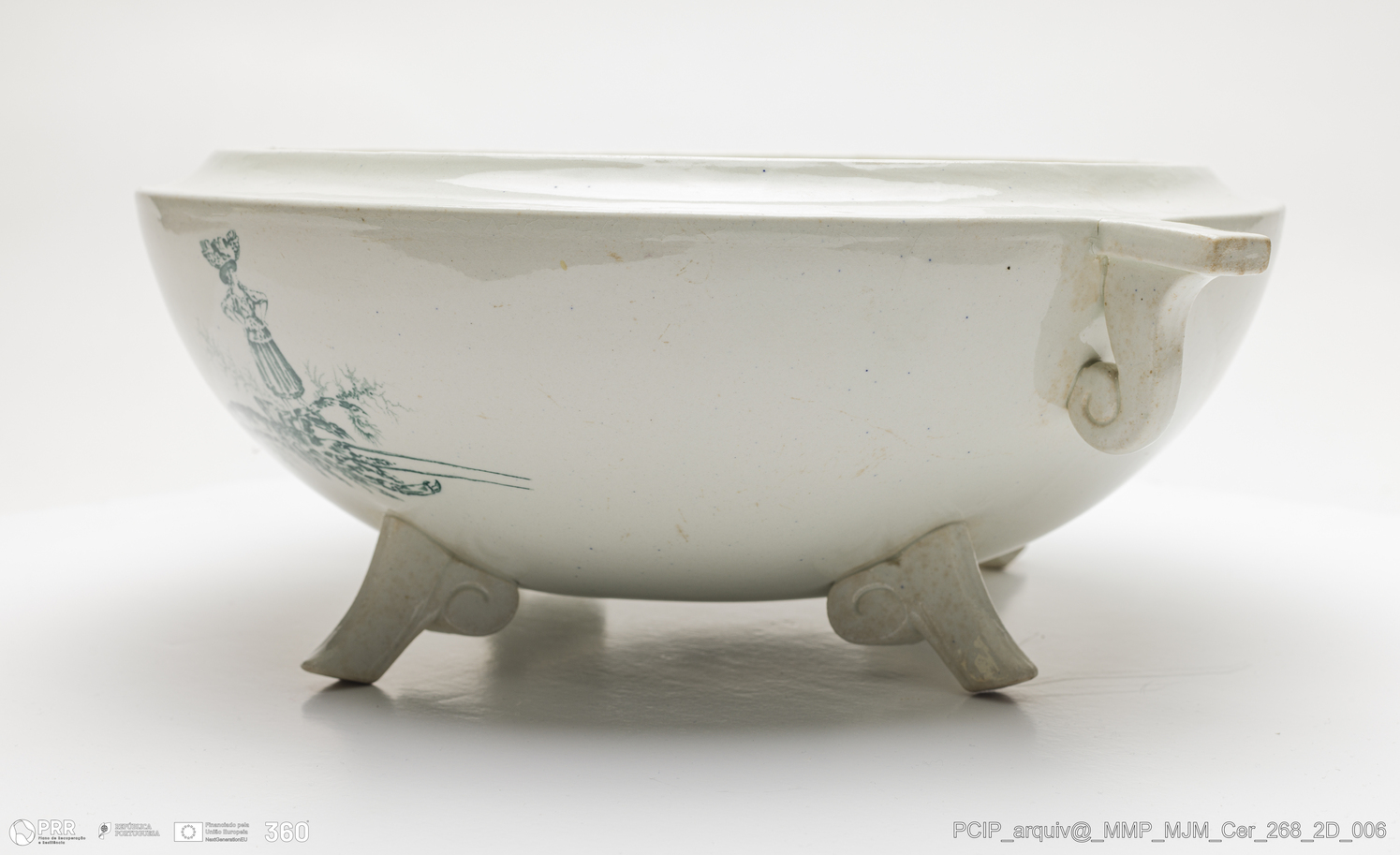 Matéria/Técnica: Barro vidrado; Cronologia: Desconhecida; Autoria: Marca: FFCR; Dimensões: Altura: 12,4 x diam 35 cm.