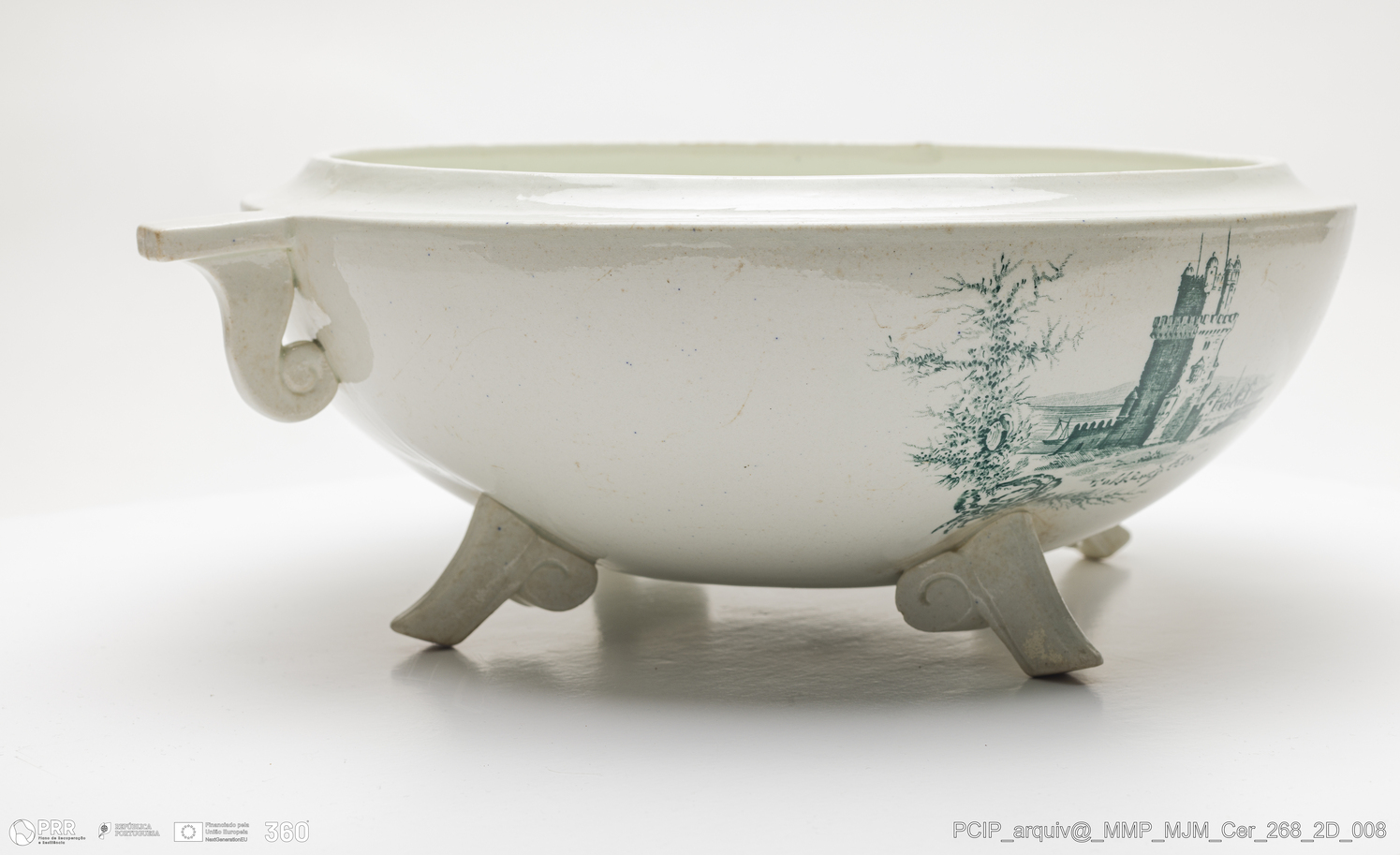 Matéria/Técnica: Barro vidrado; Cronologia: Desconhecida; Autoria: Marca: FFCR; Dimensões: Altura: 12,4 x diam 35 cm.