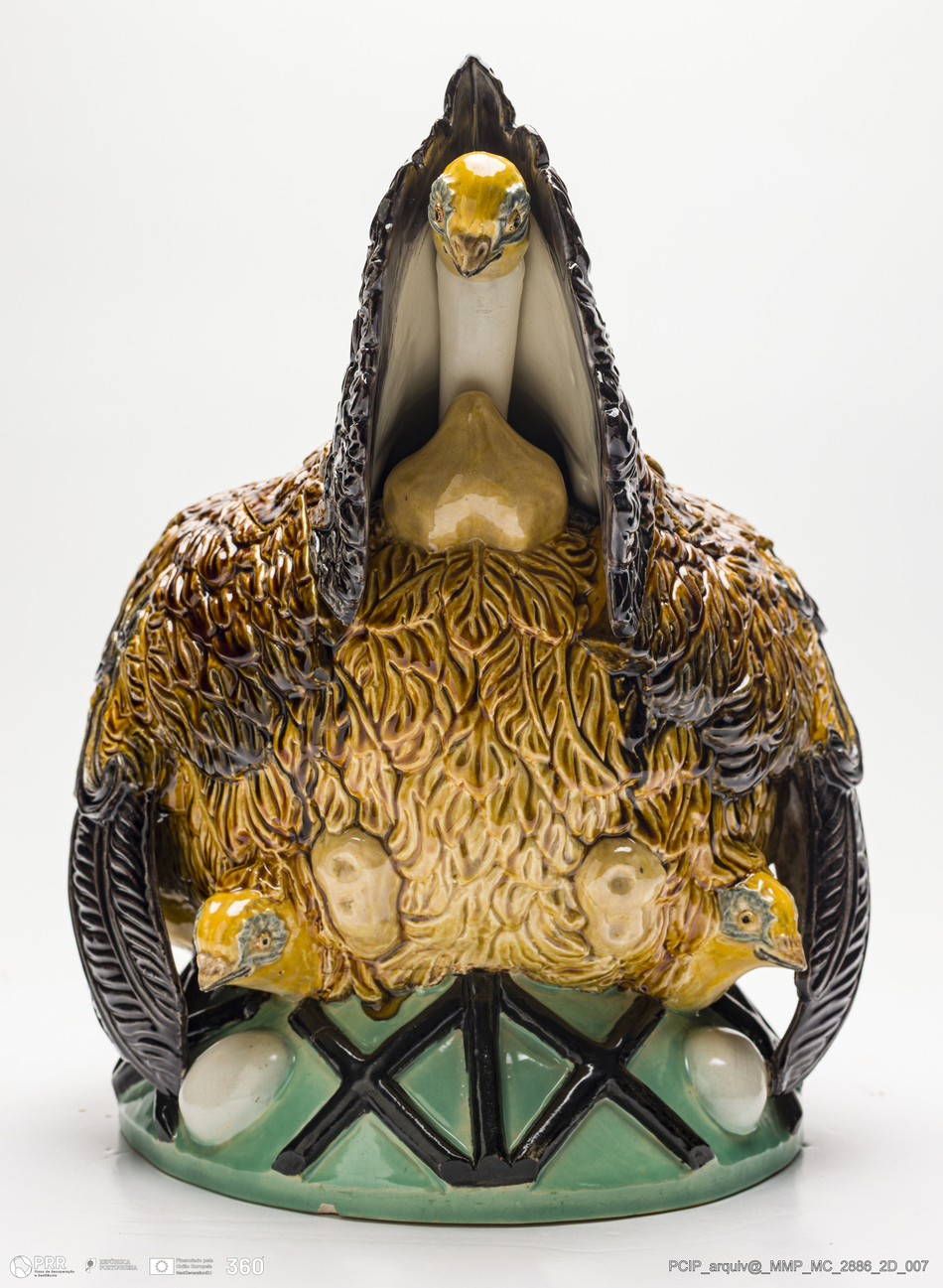 Matéria/Técnica: Faiança moldada; Cronologia: século XX; Autoria: Rafael Bordalo Pinheiro / Fábrica de Faianças das Caldas da Rainha, Portugal; Dimensões (cm): Altura: 29.