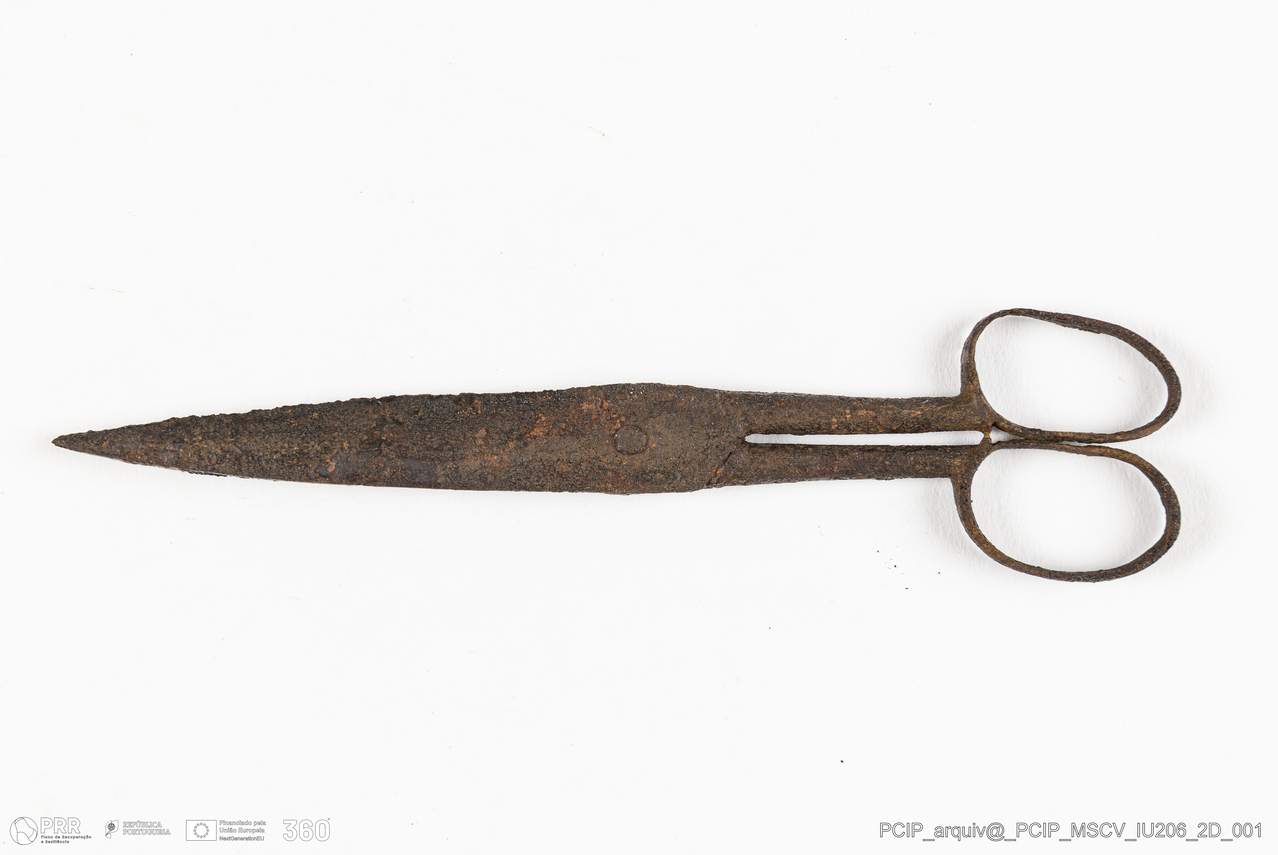 Matéria/Técnica: Metal; Cronologia: Século XVII; Autoria: Desconhecida; Dimensões: Comprimento: 125mm; Largura: 30mm; Espessura: 5,5mm.