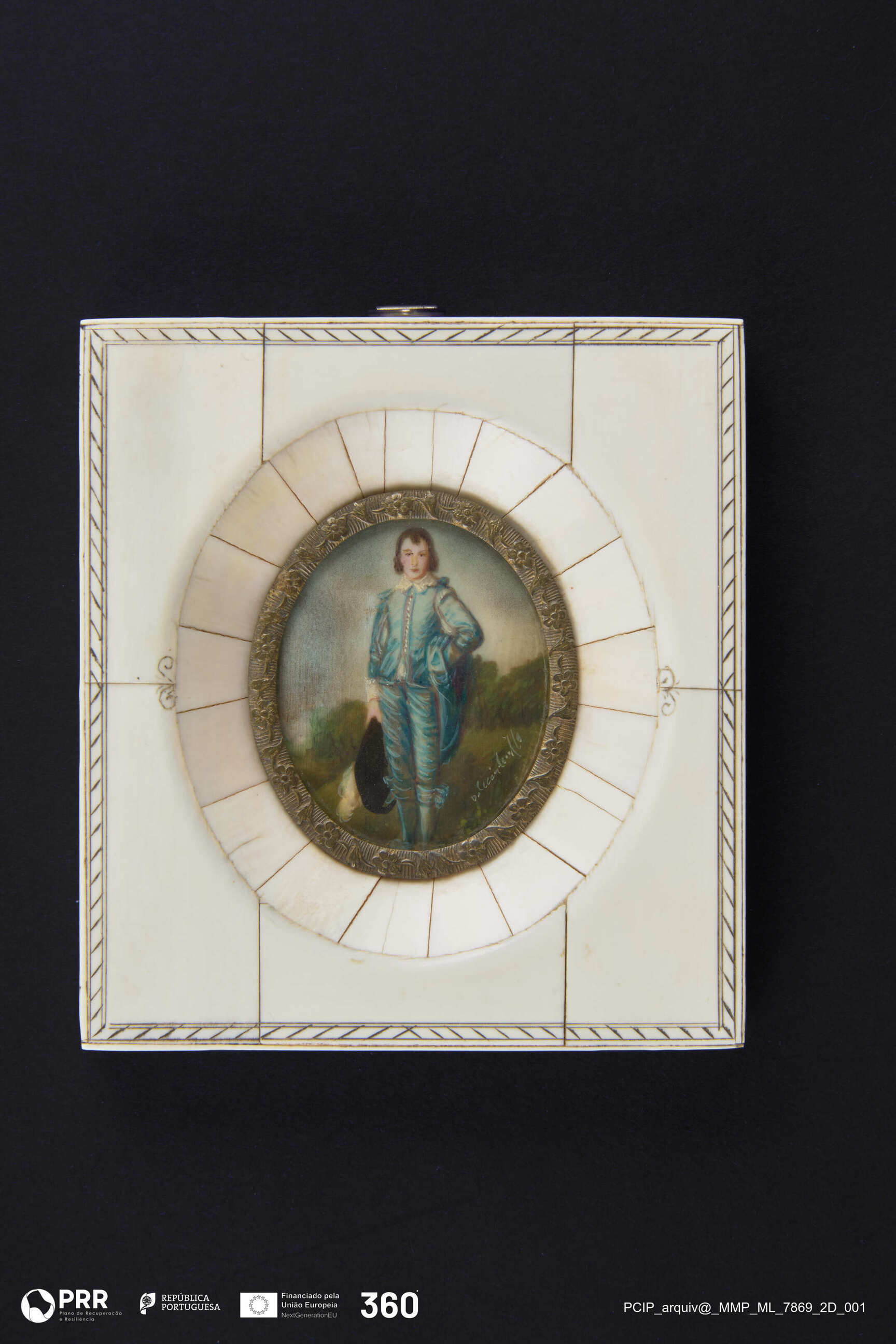 Matéria/Técnica: Pintura a óleo sobre marfim; Cronologia: Desconhecida; Autoria: Holmes, George; Dimensões (cm): Altura: 4,5 x Largura: 3,6.
