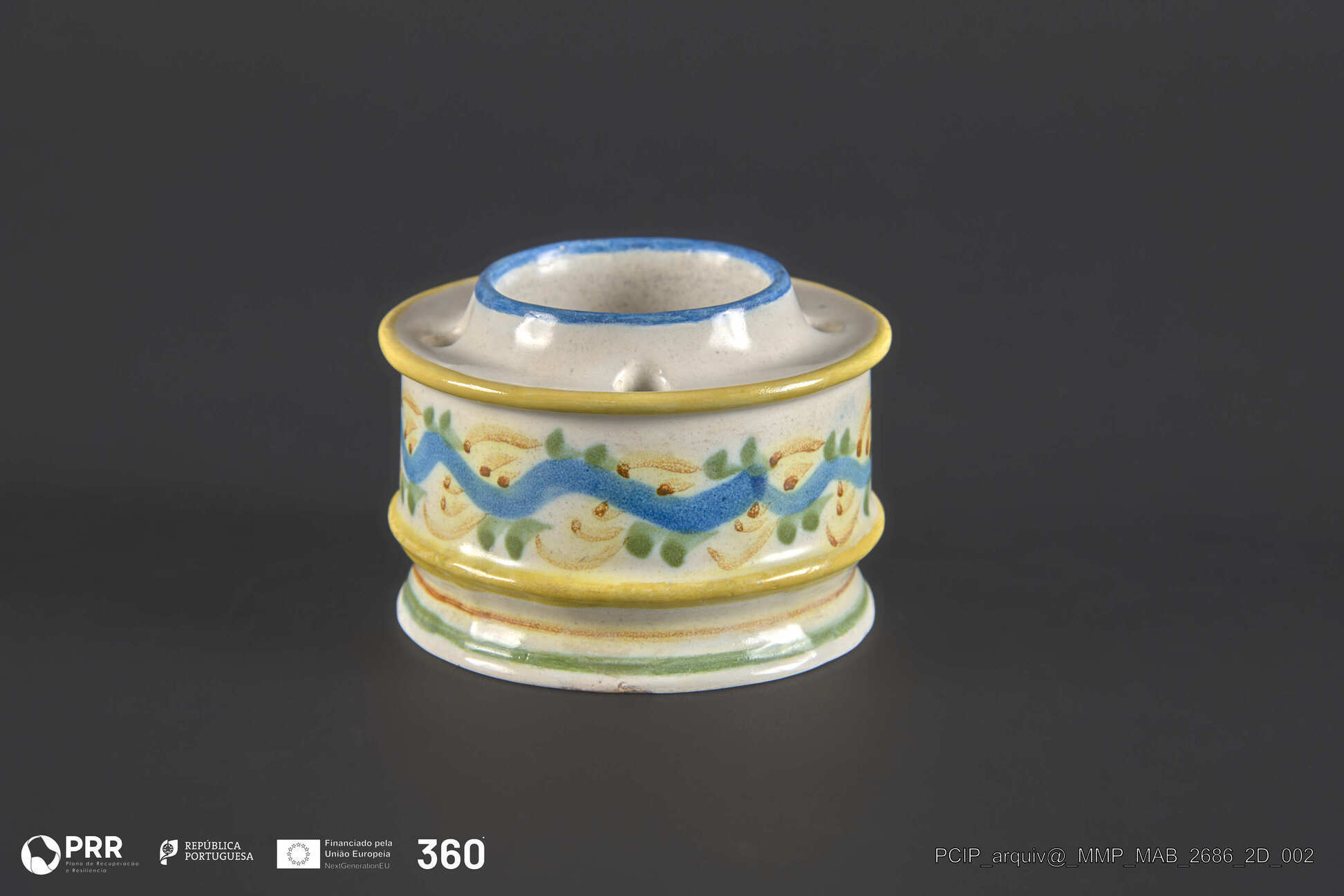 Matéria/Técnica: Faiança policroma, rodada e moldada; Cronologia: Desconhecida; Autoria: Desconhecida; Dimensões: Desconhecidas.
