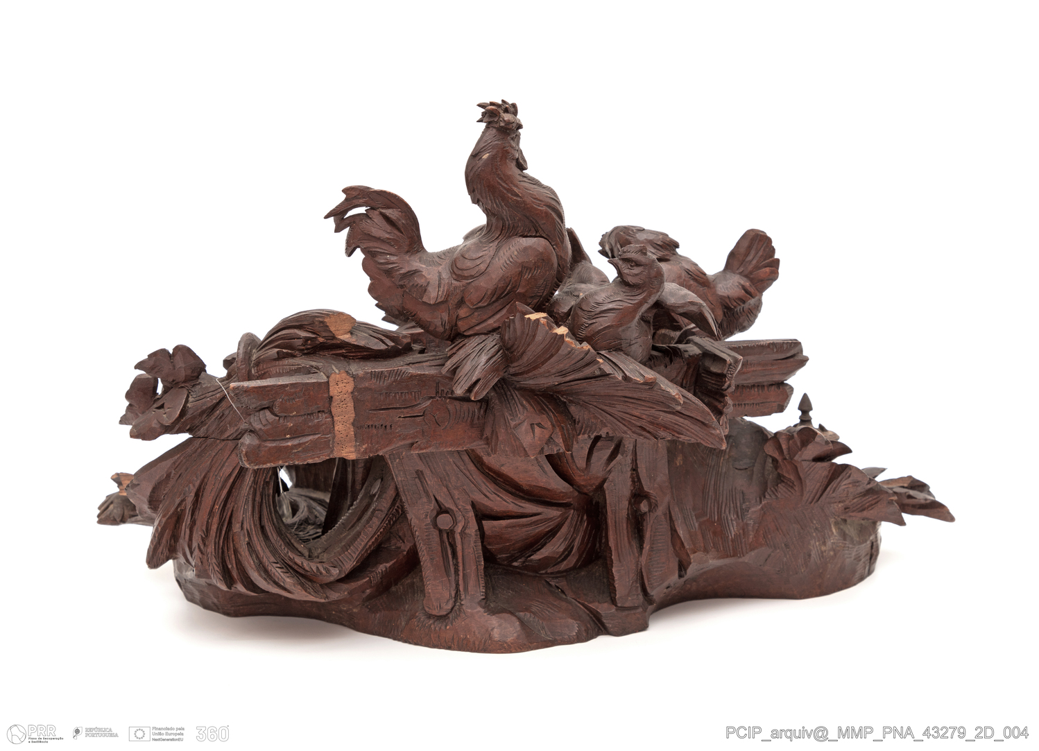 Matéria/Técnica: Madeira de tília ou nogueira (?), metal e vidro; Cronologia: Século XIX; Autoria: Desconhecida; Dimensões (cm): Altura: 28; Largura: 50; Profundidade: 40.