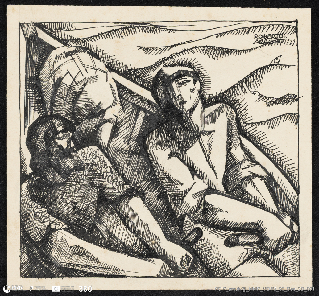 Matéria/Técnica: Tinta da china sobre papel; Cronologia: Séc. XX; Autoria: Roberto Araújo; Dimensões: Altura: 32 cm x Largura: 49 cm.