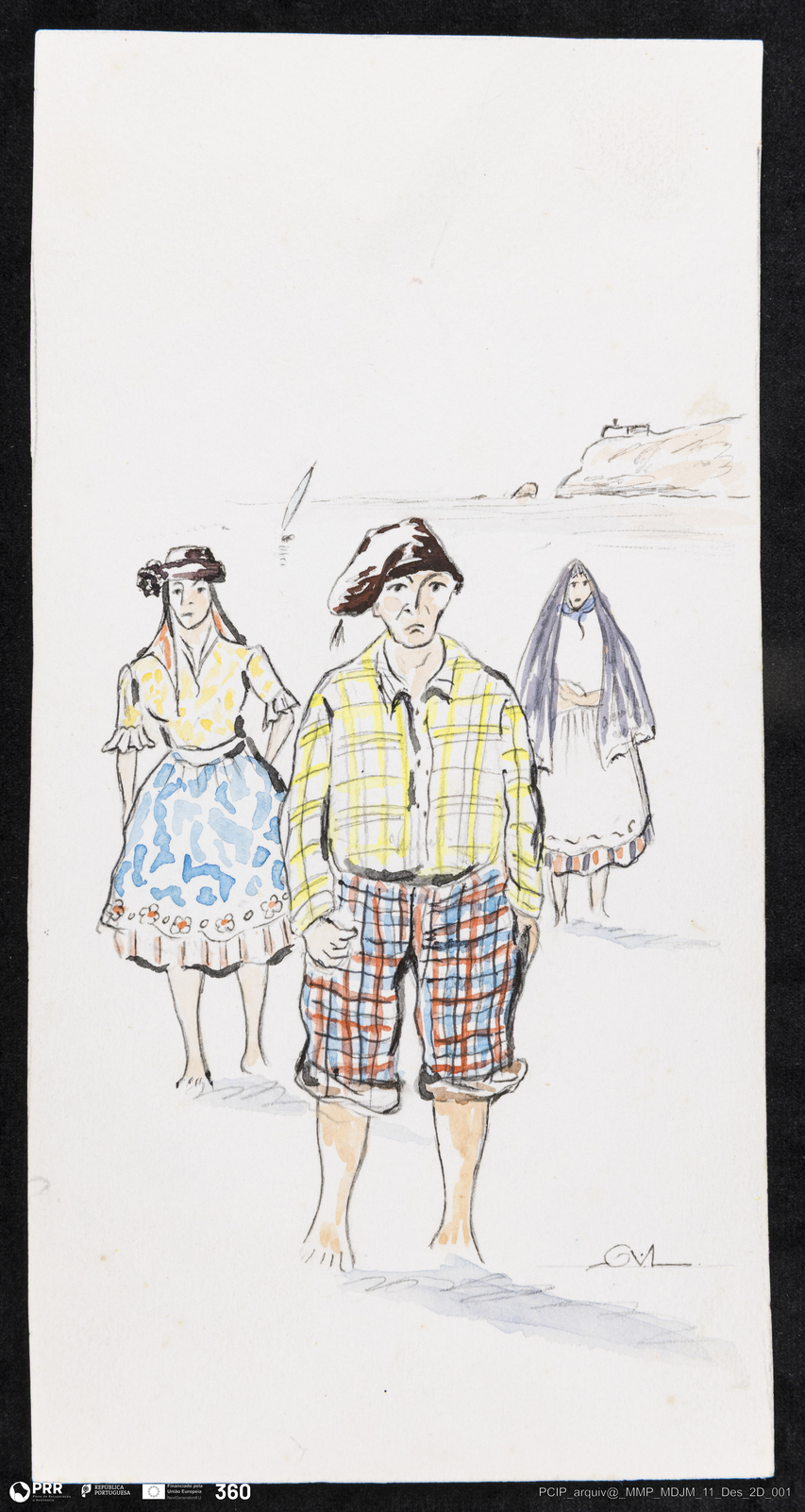 Matéria/Técnica: Desenho aguarelado sobre papel; Cronologia: Séc. XX; Autoria: António Vitorino Laranjo; Dimensões: Altura: 21,5 cm x Largura: 14,4 cm.