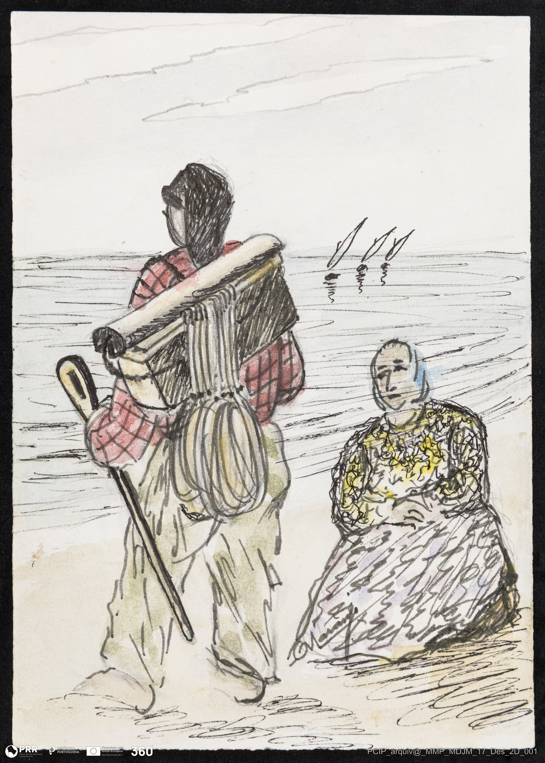 Matéria/Técnica: Aguarelada sobre papel; Cronologia: Séc. XX; Autoria: António Vitorino Laranjo; Dimensões: Altura: 39,7 cm x Largura: 15,7 cm.
