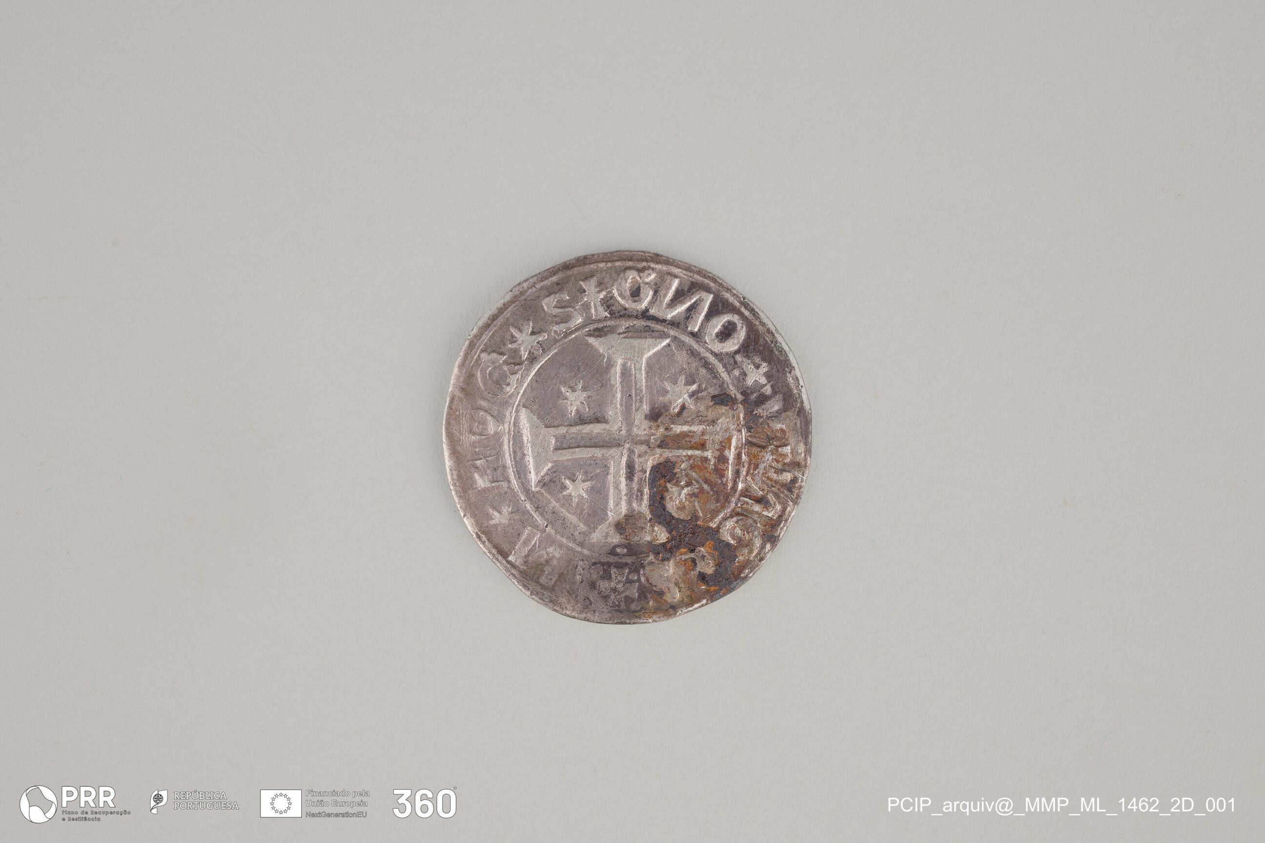 Matéria/Técnica: Cunhagem; Cronologia: 1469-1521; Autoria: Desconhecida; Dimensões (cm): Diâmetro: 2,6.