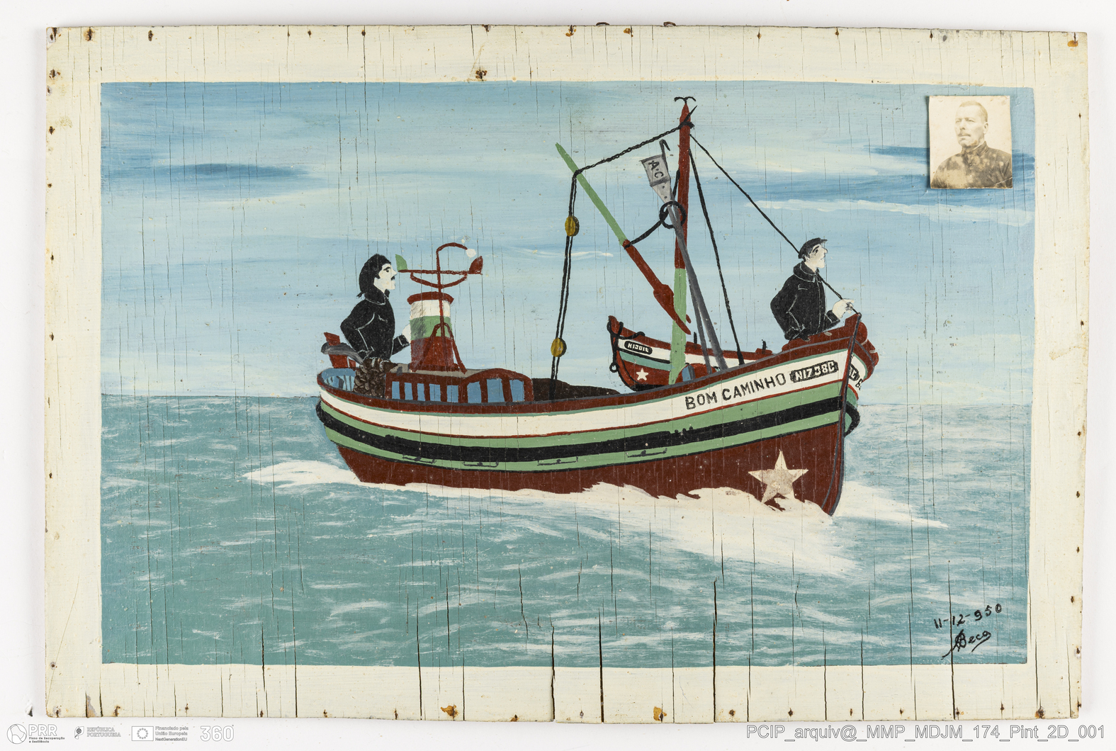 Matéria/Técnica: Óleo sobre madeira; Cronologia: 1950; Autoria: António da Beca; Dimensões: Altura: 47 cm x Largura: 31 cm.