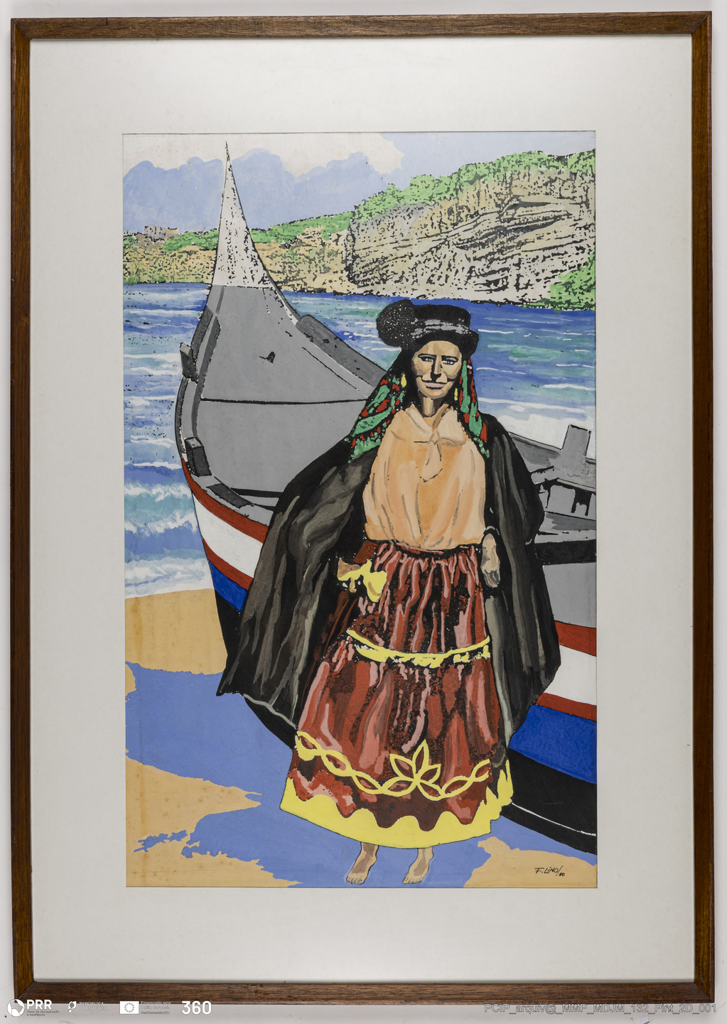 Matéria/Técnica: Gouache sobre papel; Cronologia: 1990; Autoria: Fernando Lino; Dimensões: Altura: 75 cm x Largura: 47 cm.