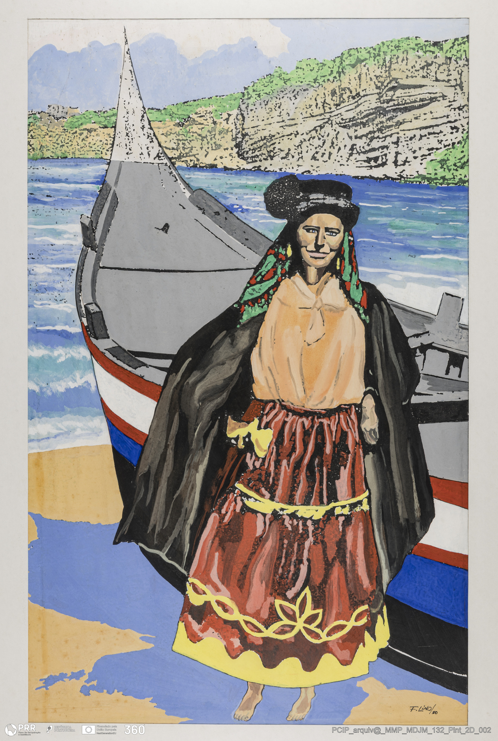 Matéria/Técnica: Gouache sobre papel; Cronologia: 1990; Autoria: Fernando Lino; Dimensões: Altura: 75 cm x Largura: 47 cm.
