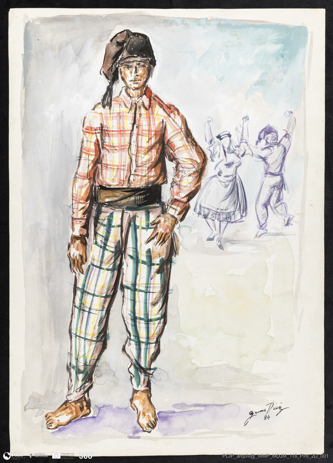 Matéria/Técnica: Aguarela sobre papel; Cronologia: 1984; Autoria: Gama Diniz; Dimensões: Altura: 41 cm x Largura: 27,5 cm.