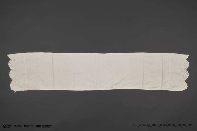 Matéria/Técnica: Desconhecida; Cronologia: Século XX; Autoria: Desconhecida; Dimensões (cm): Largura: 34 x Comprimento: 165.