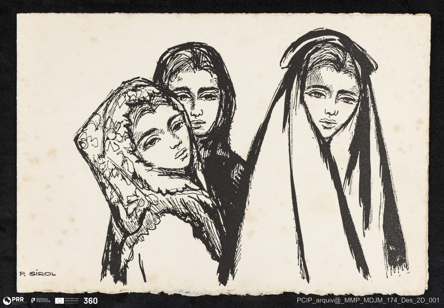 Matéria/Técnica: Tinta da china sobre papel; Cronologia: Séc. XX; Autoria: Paul Girol; Dimensões: Altura: 14,3 cm x Largura: 21 cm.