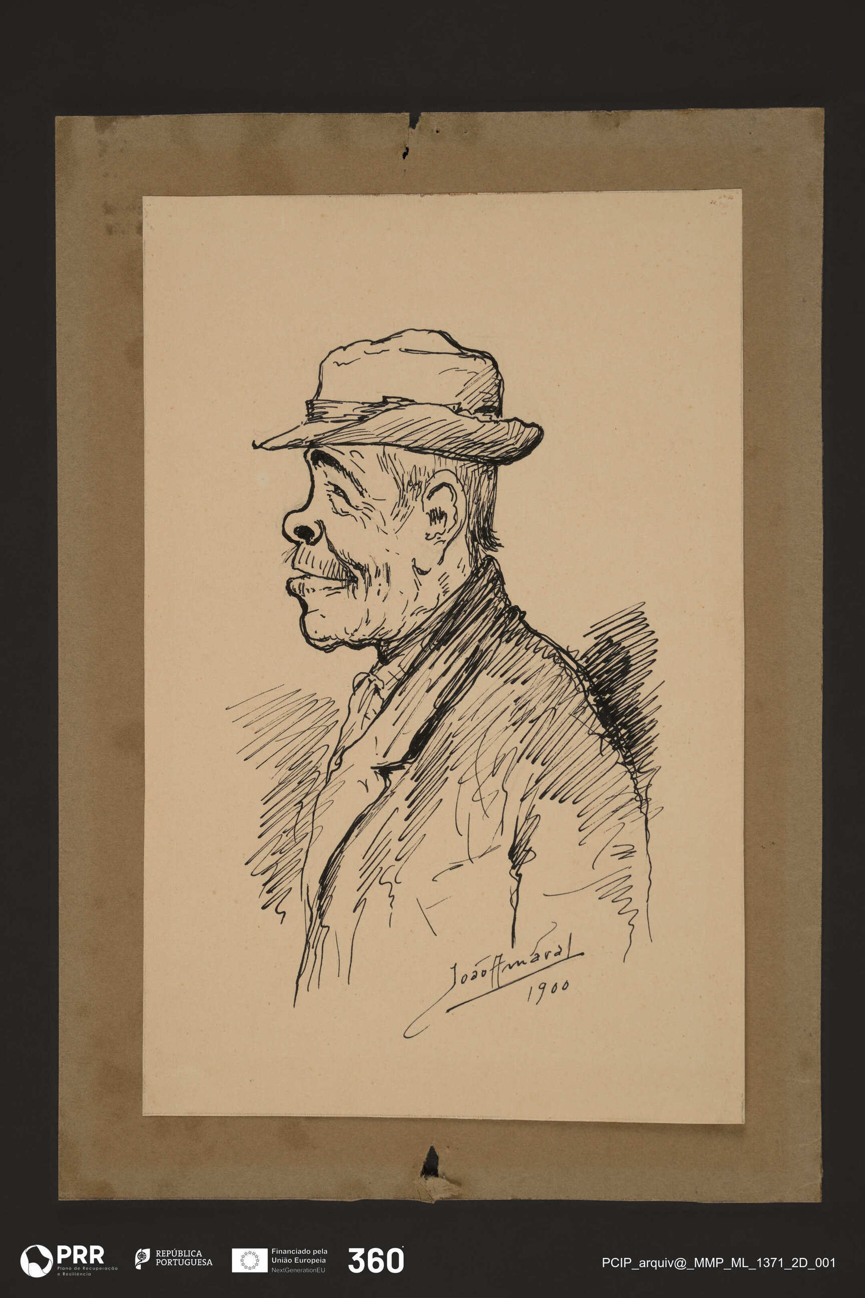 Matéria/Técnica: Desenho à pena; Cronologia: 1900; Autoria: Amaral, João (1874 - 1955); Dimensões (cm): Altura: 20,3 x Largura: 13,3.