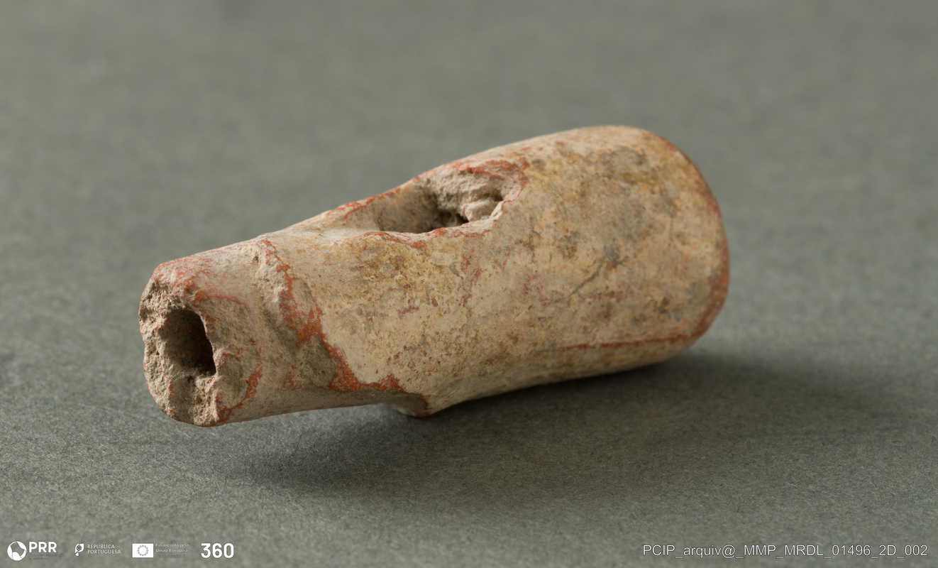 Matéria/Técnica: Barro; Cronologia: Desconhecida; Autoria: Desconhecida; Dimensões: Diâmetro: 1,60 cm; Comprimento: 4,30 cm.